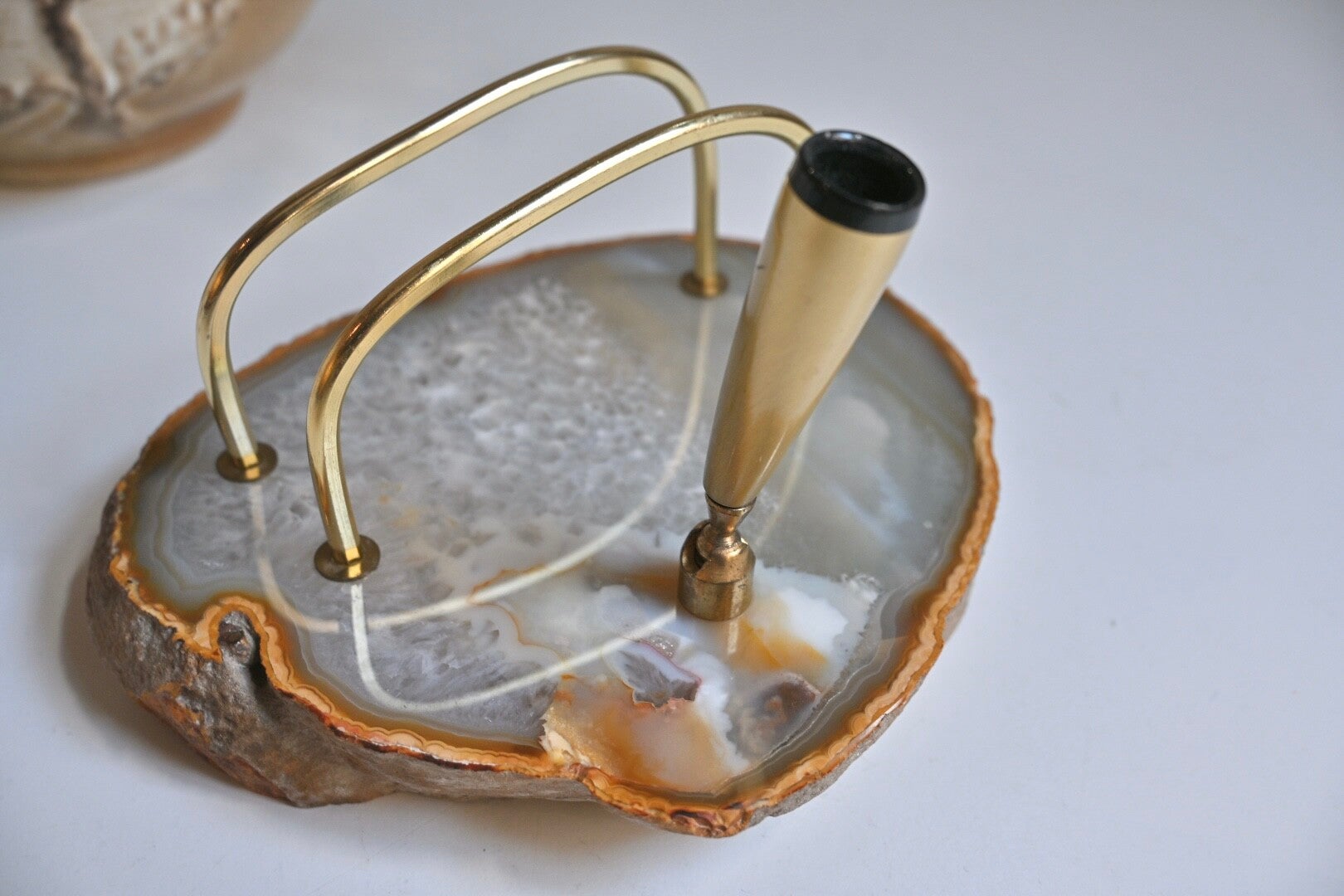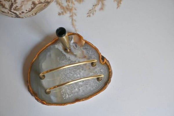 Onwijs mooie bureau decoratie is deze agaat steen pennenhouder met briefhouder ineen. Prachtig item dat zeker een plekje verdient bv op je werkplek.