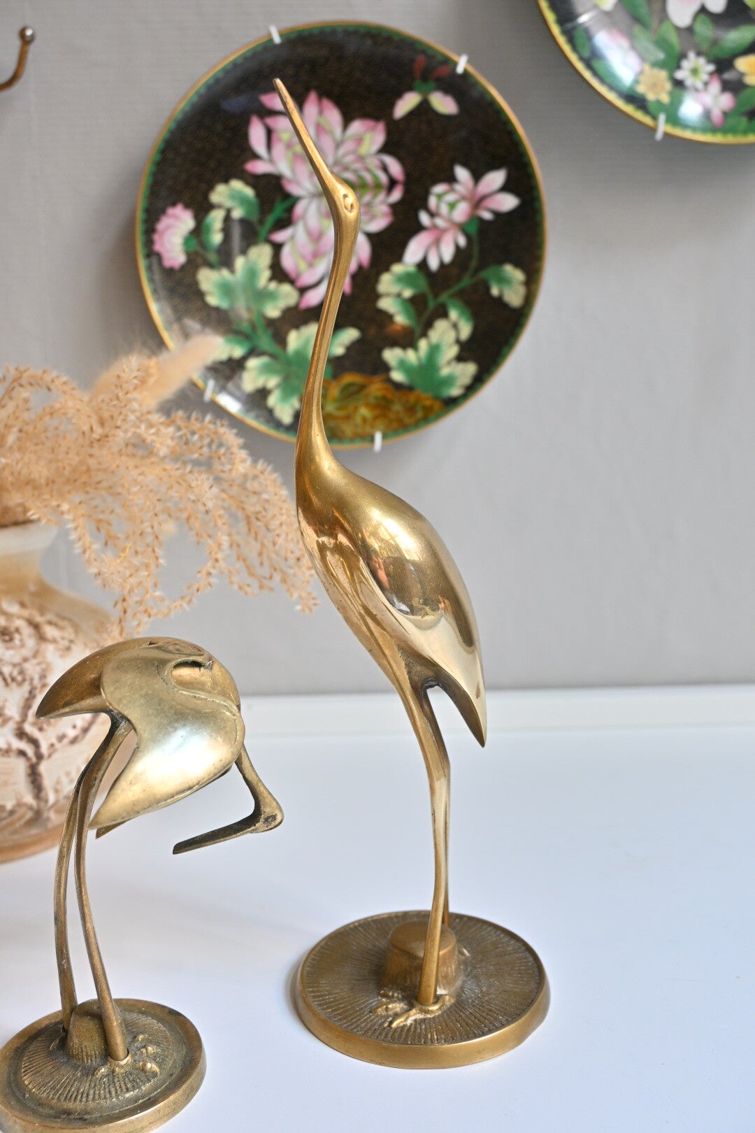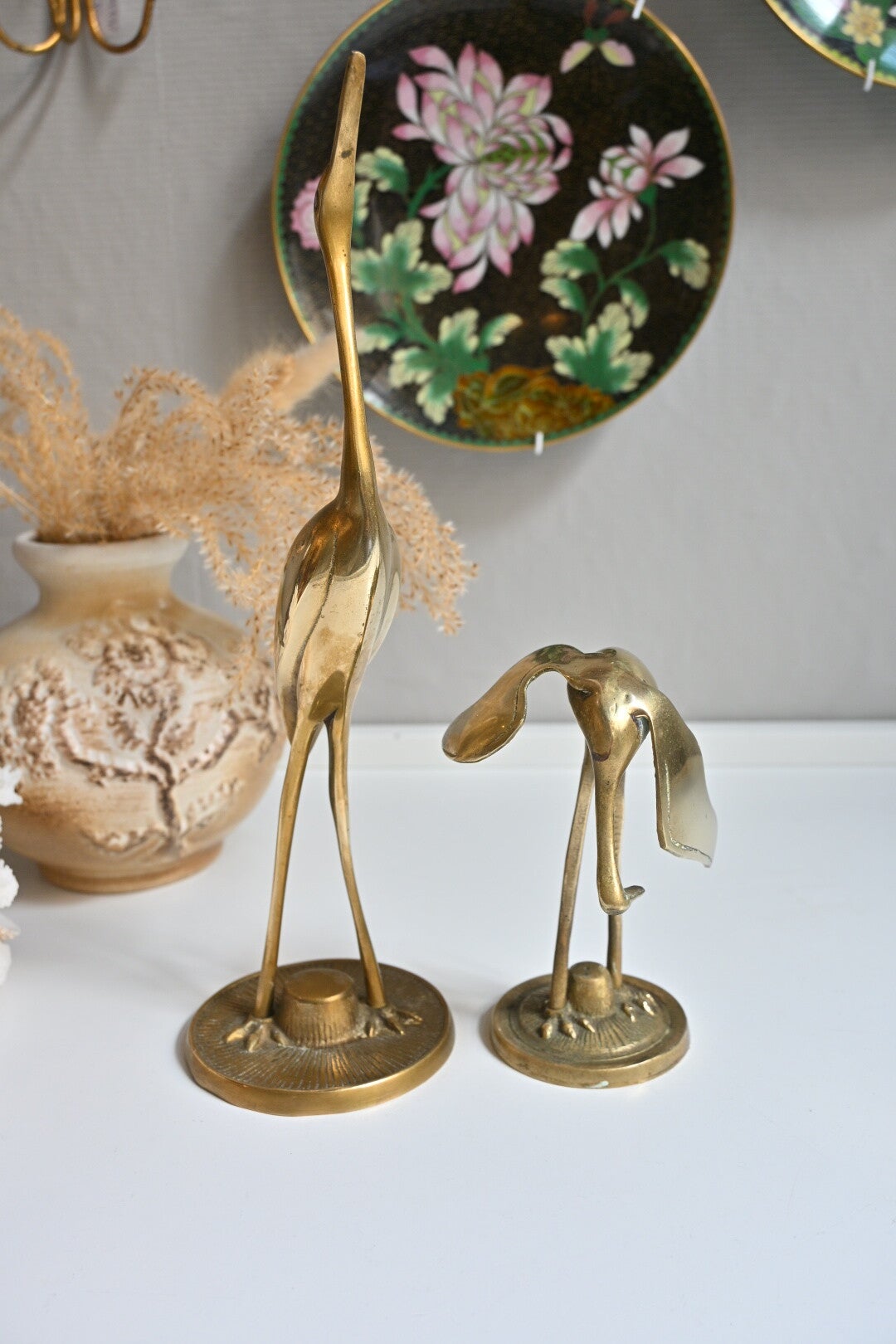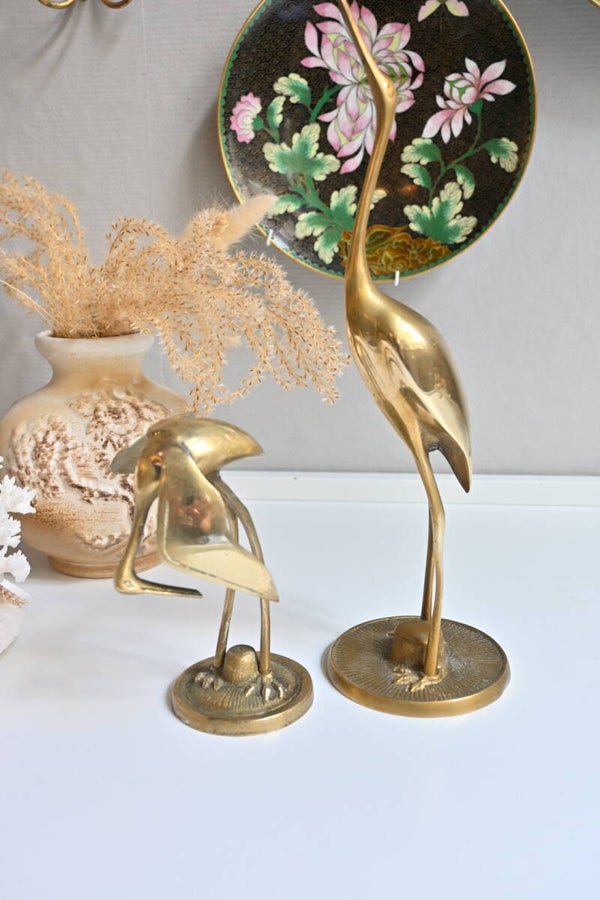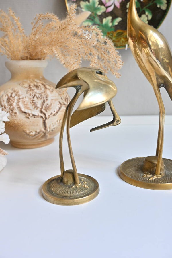 Wat een mooi stel, deze twee messing kraanvogels. Maar zeg nou zelf, wie wil er nou niet deze lovebirds in huis hebben.