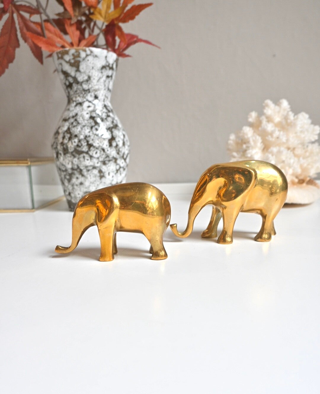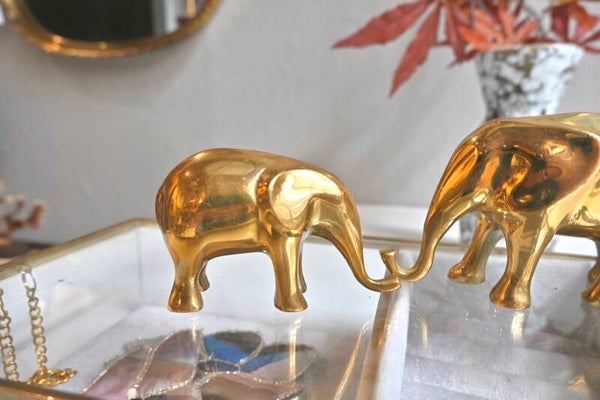 Leuke set olifantjes, ze zijn gemaakt van messing. Hebben een poets beurtje gehad en glimmen weer mooi.