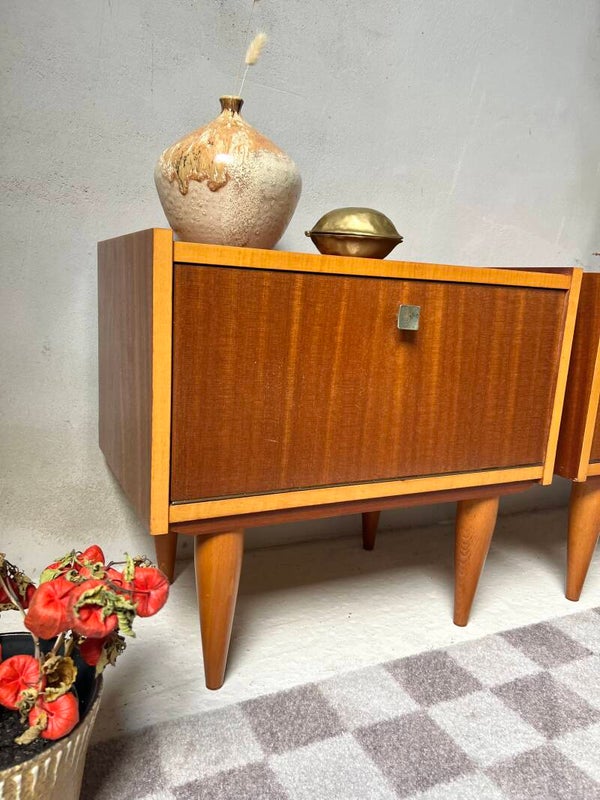 Twee leuke vintage nachtkastjes 🤩 voorzien van een klep deurtje. Mooie pareltjes voor naast je bed✨