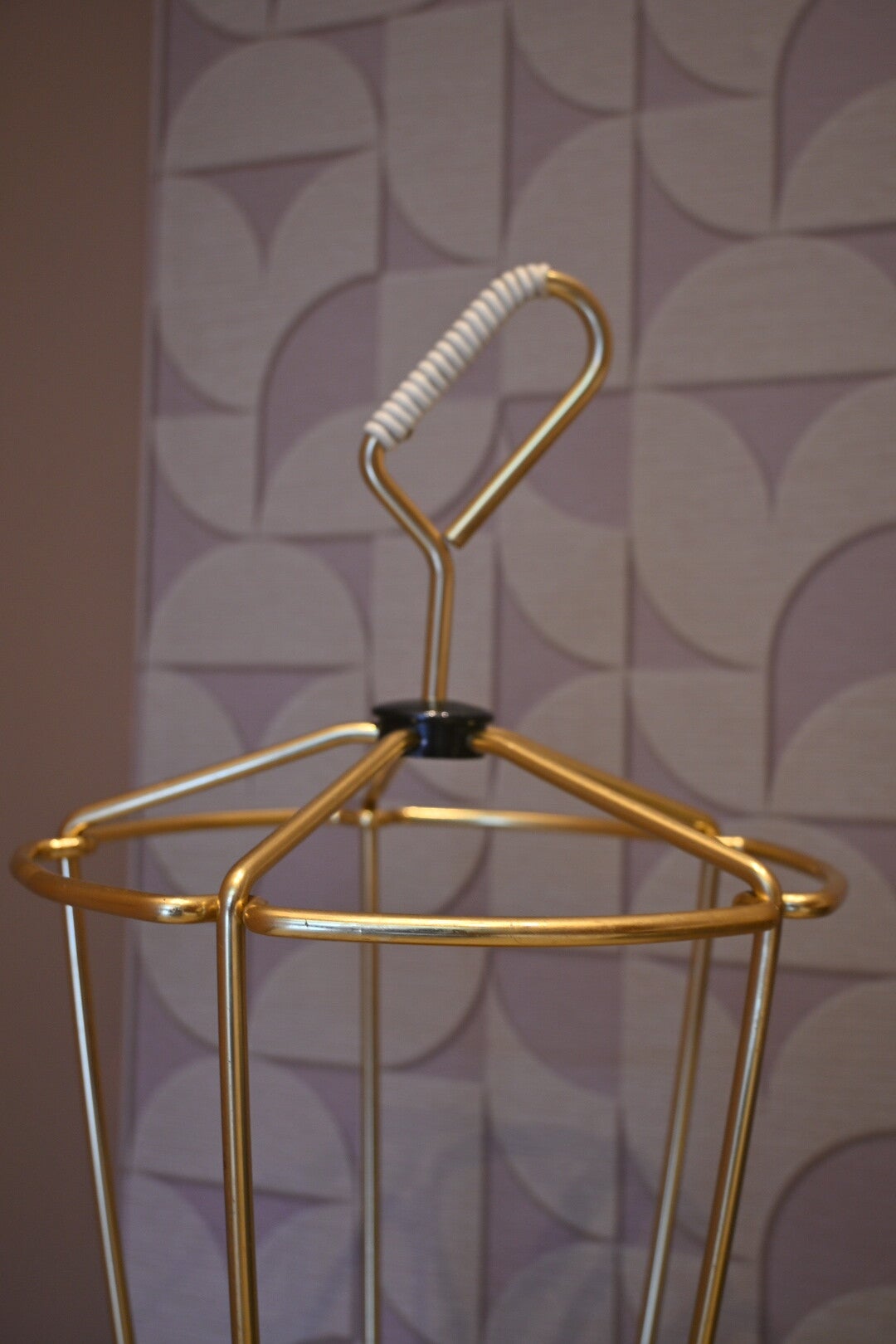 Prachtige vintage parapluhouder op 3 pootjes. Een mooi goudkleurig opvangbakje geeft het een luxe uitstraling. Onwijs mooi decoratief item voor in je hal of entree.H:67cm Dia: bovenkant 26cmDia: onderkant 22cm