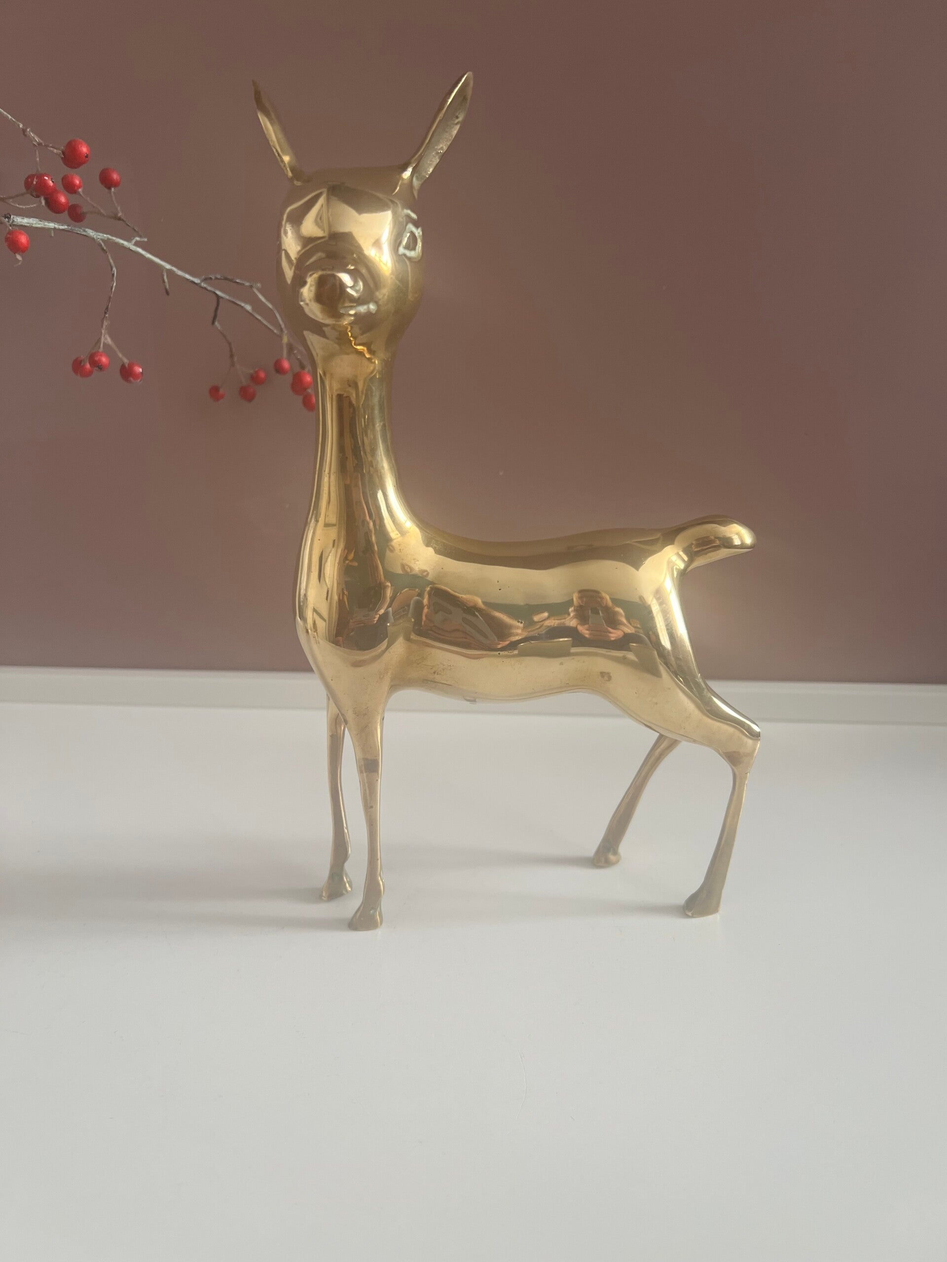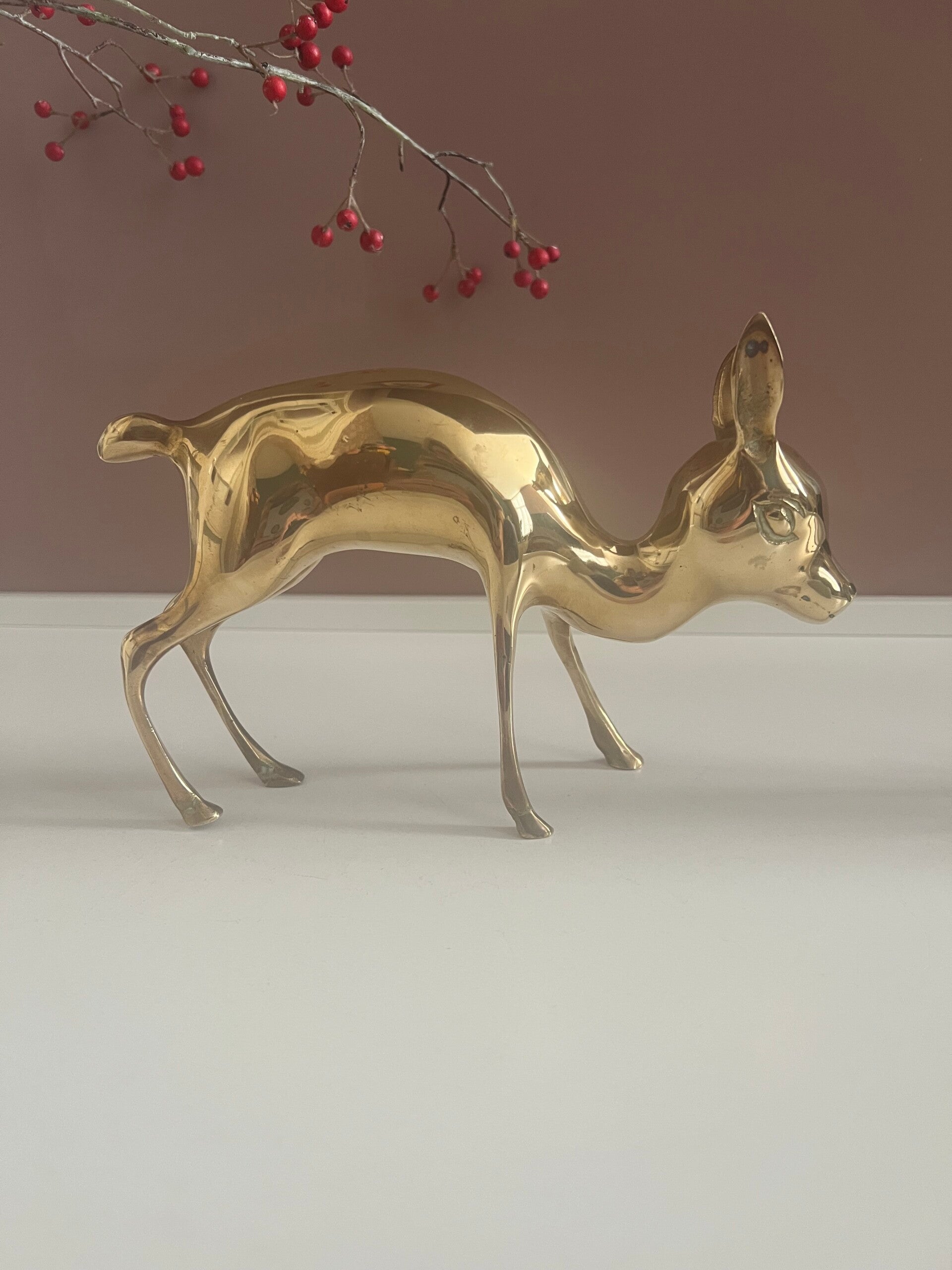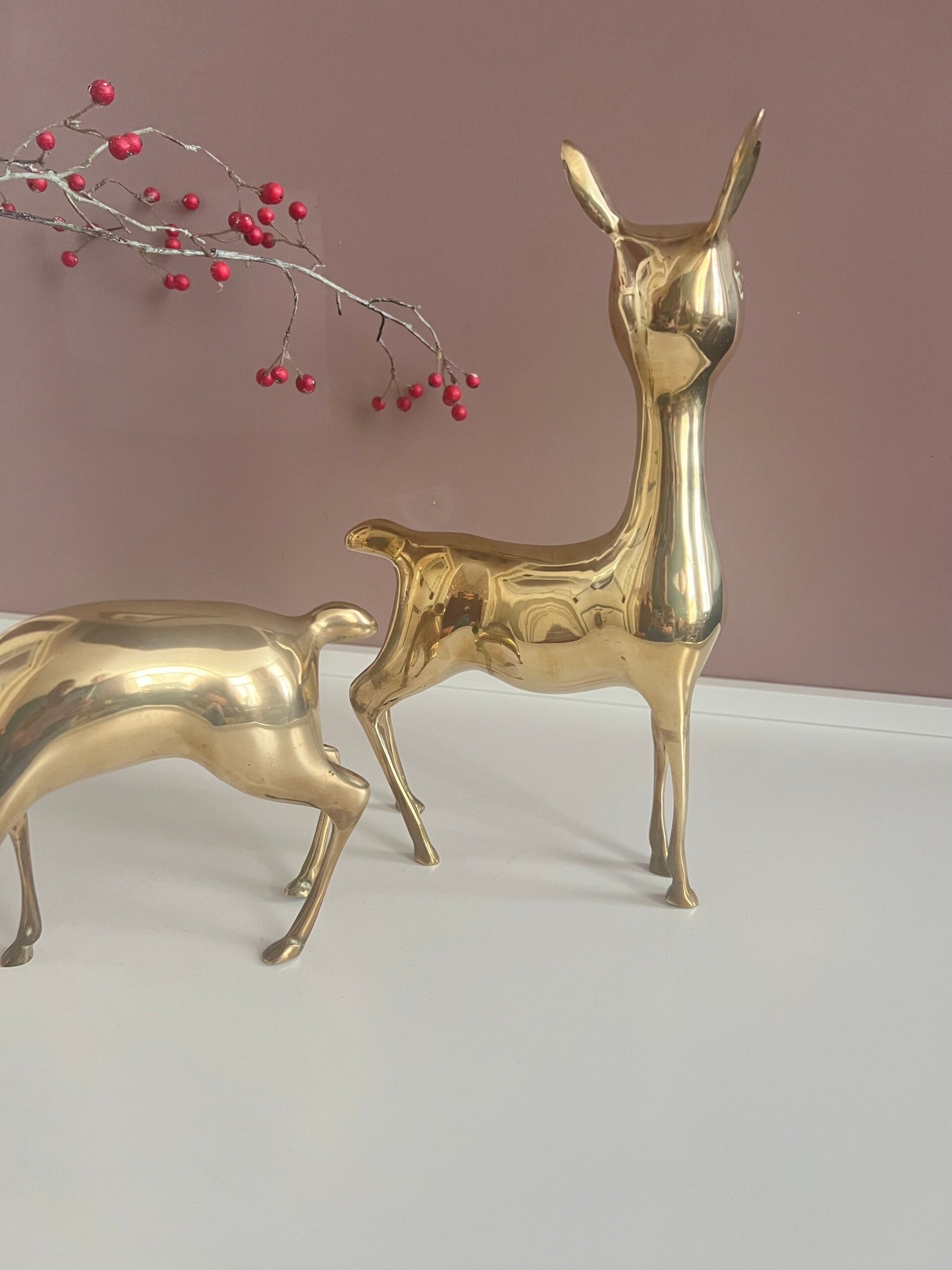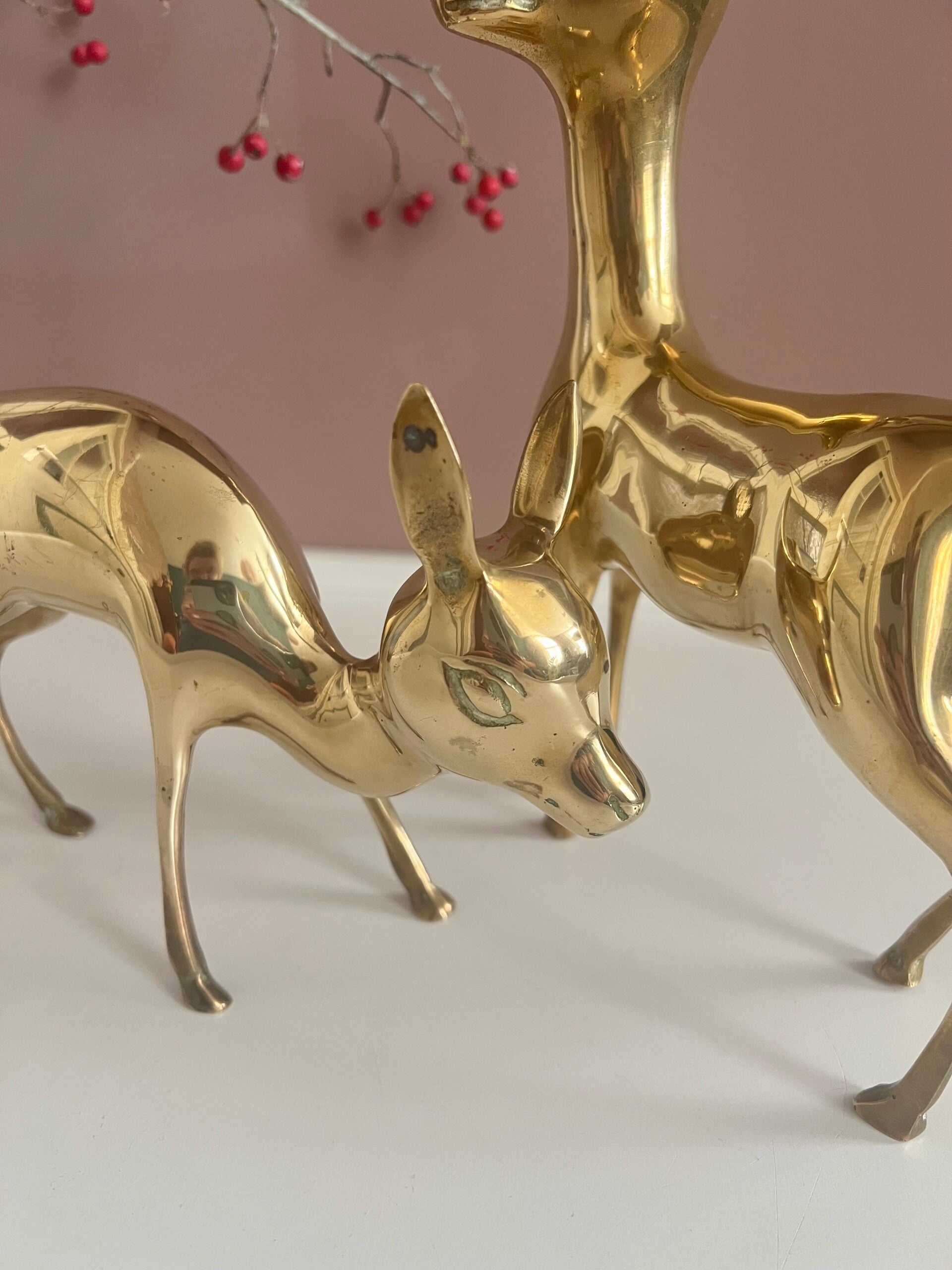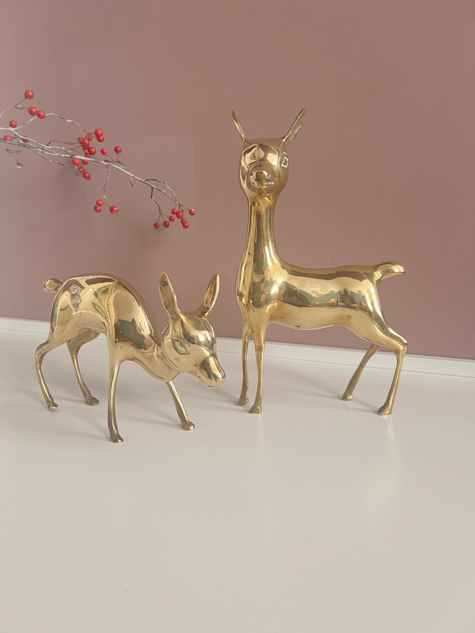 Statement piece deze Hollywood regency set messing bambi's herten in groot formaat. De bambi's zijn gemaakt van messing.