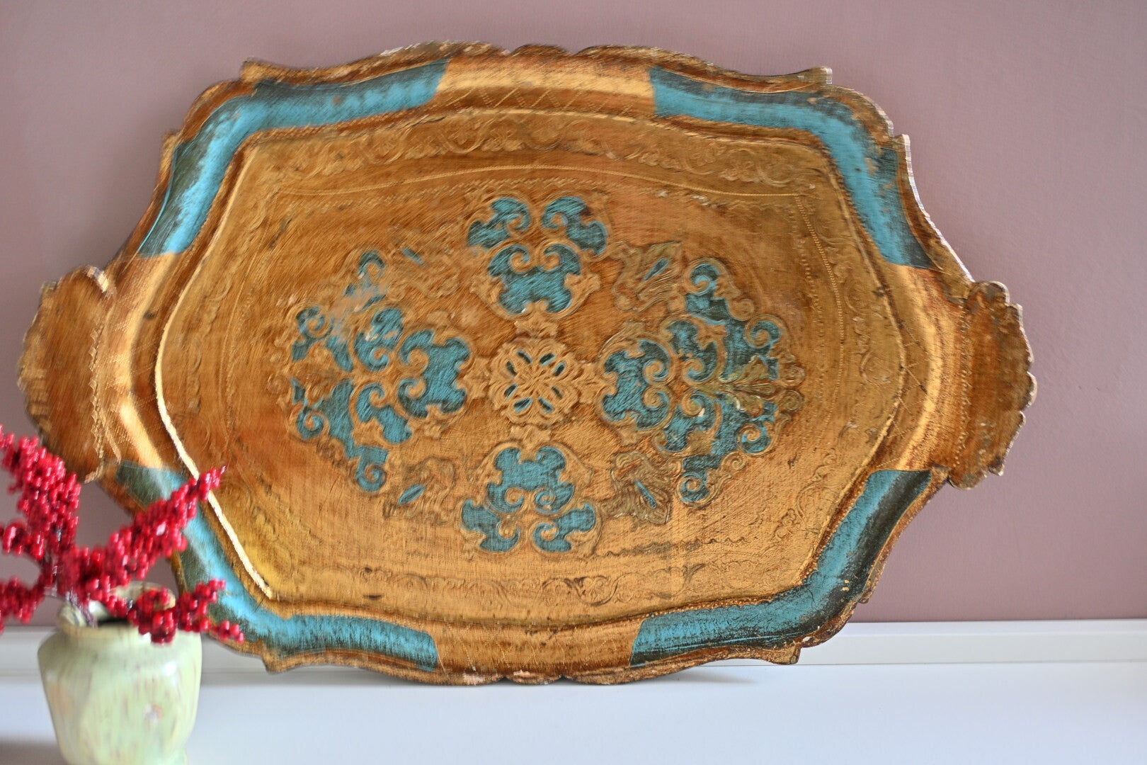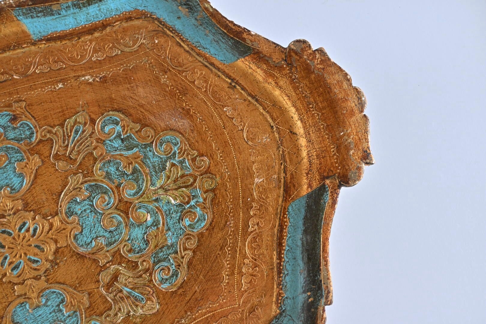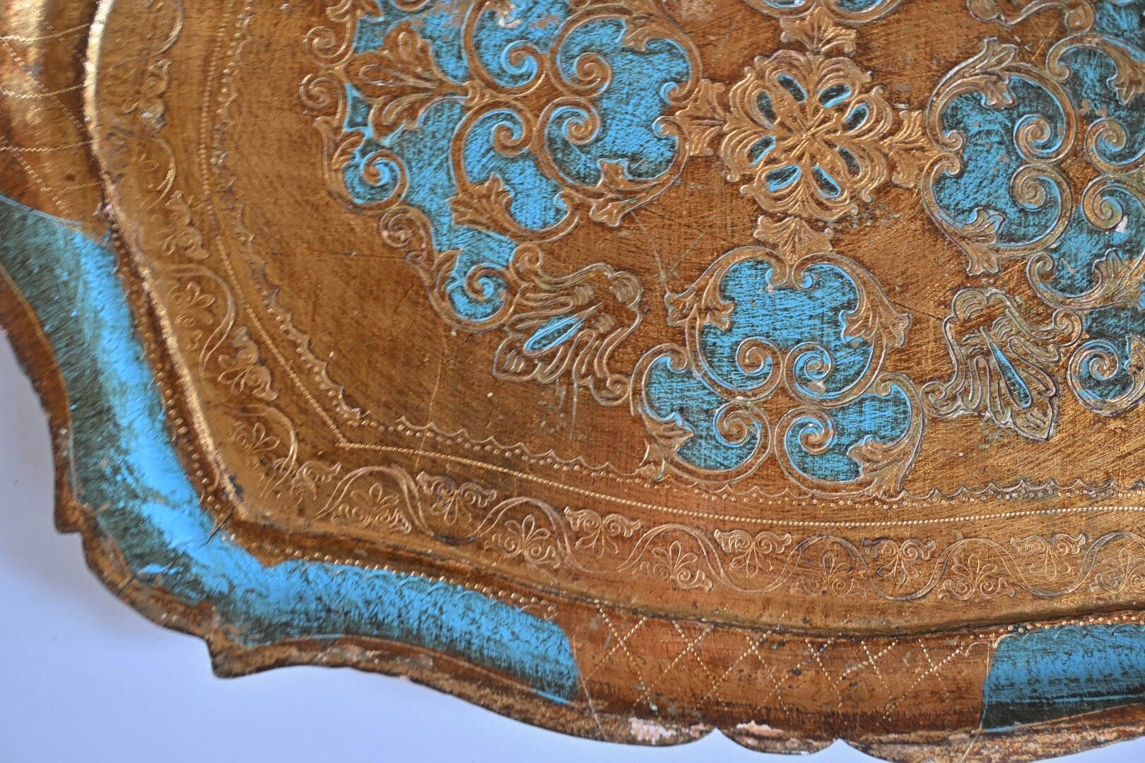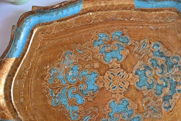 Mooi groot Florentijns dienblad, met blauw en goud kleuren.