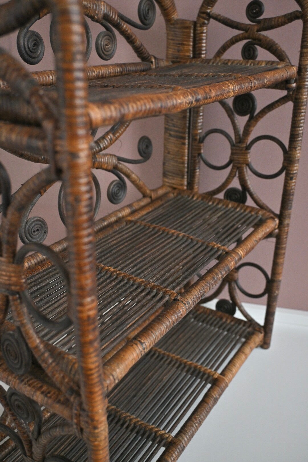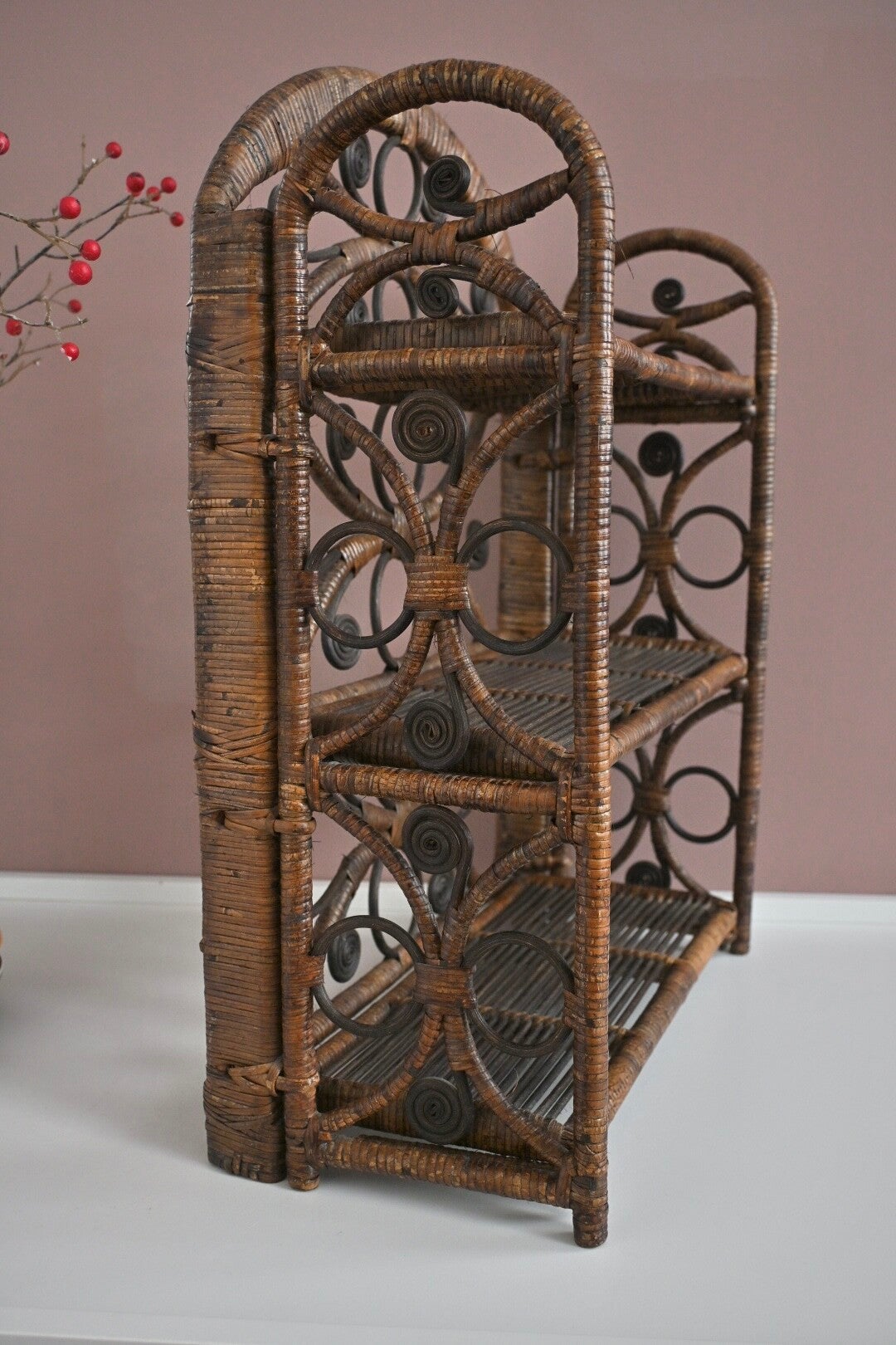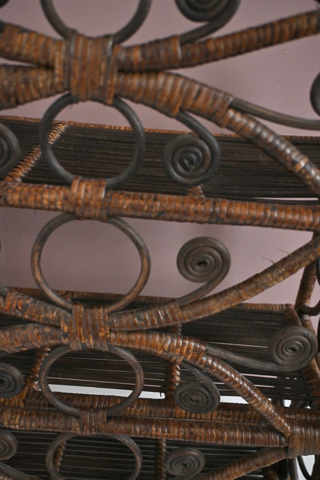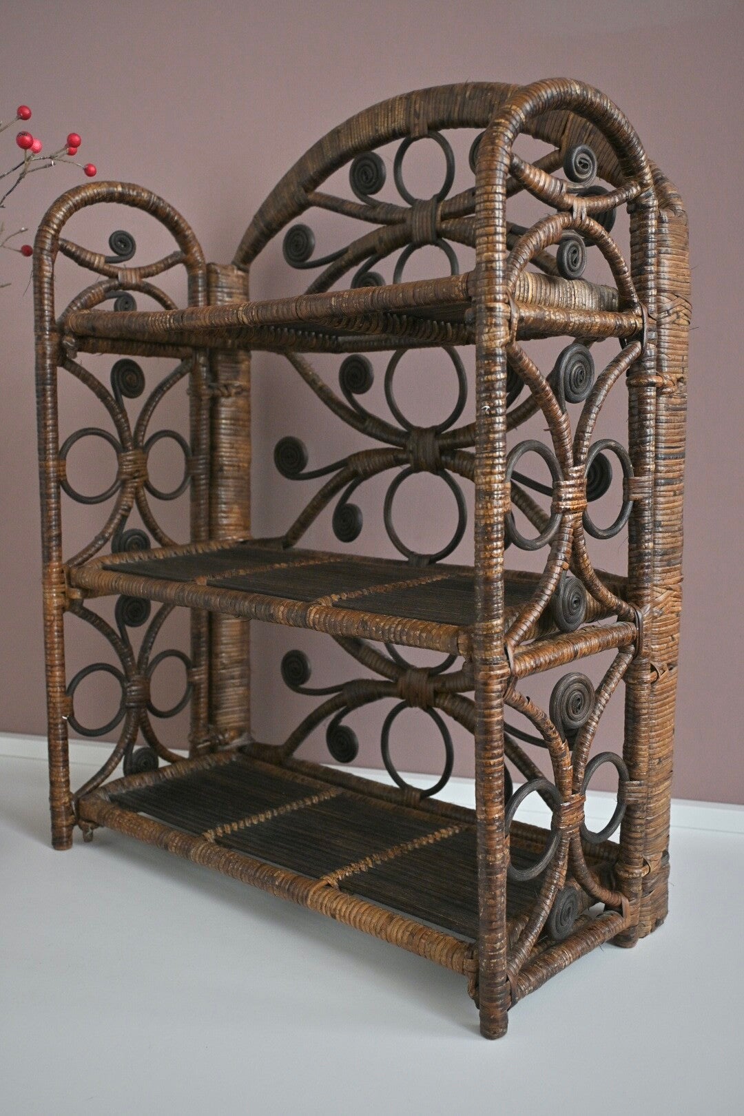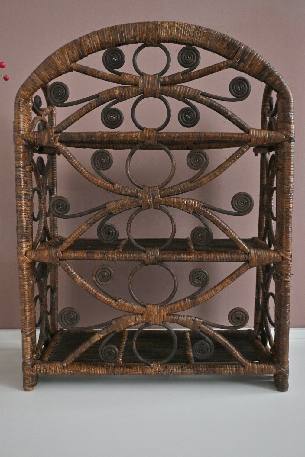Sierlijk Bohemian rotan wandrek, een blikvanger voor in je interieur.Verkeert nog in een mooie staat.H:54cm B:40cm D:20cm