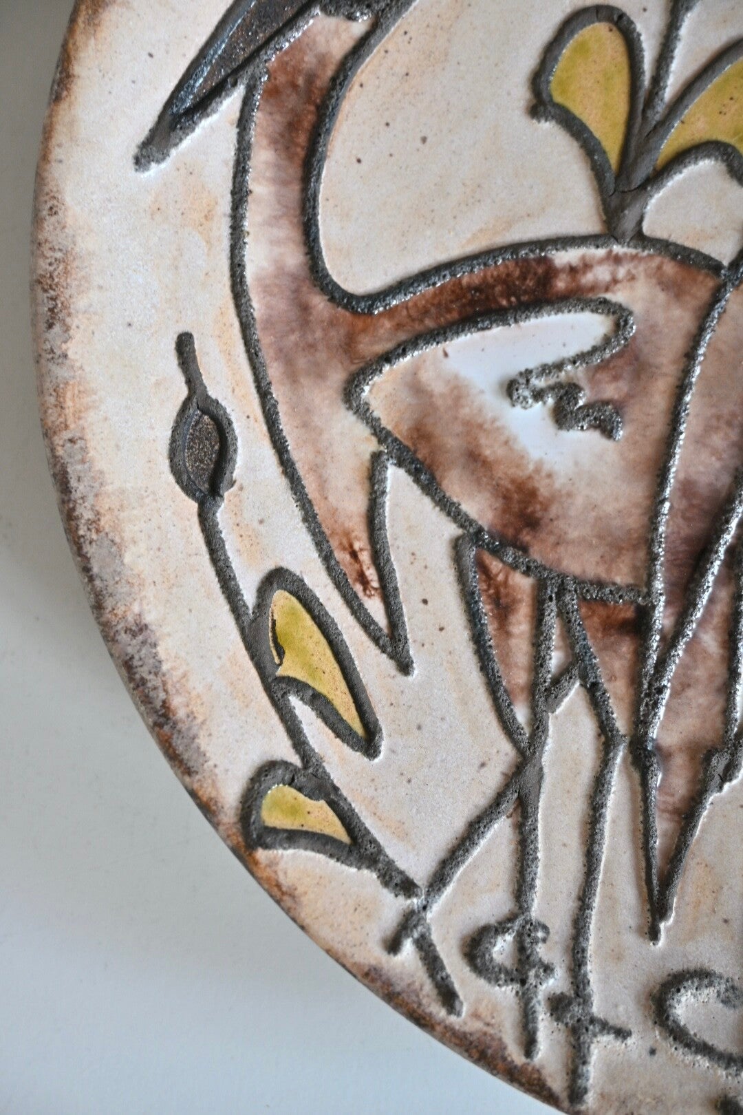 Leuk keramisch wandbord van Ruscha Keramiek, een West-Duitse pottenbakkerij die bekend staat om zijn innovatieve ontwerpen en experimenten met glazuren in het midden van de 20e eeuw.