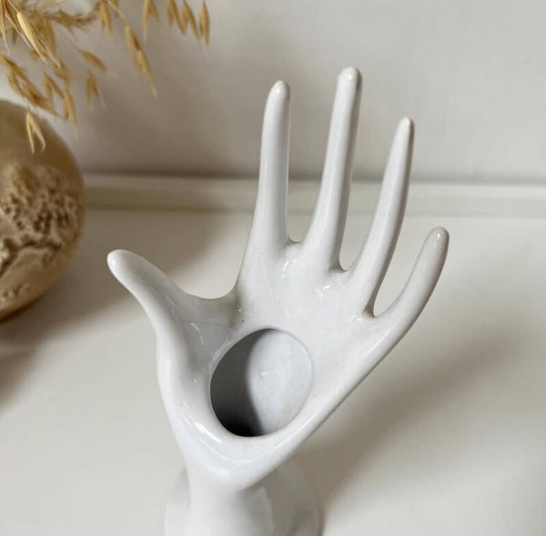 Leuk handje super mooi als decoratie op een kast zeker als je er een paar bij elkaar zet. Maar ook handig om je sieraden op te bergen, of je penselen.H:20cm