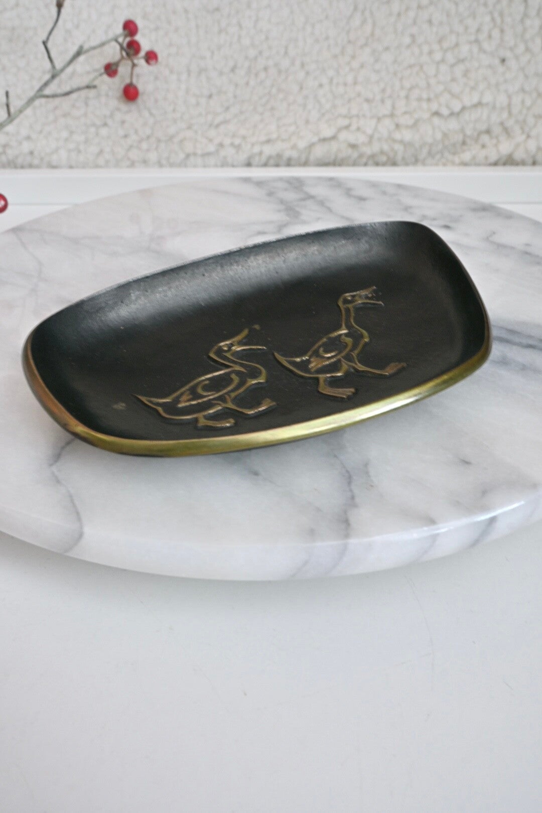 Leuk mid-century metalen wandbordje met messing eendjes.Verkeert nog in een goede staat.