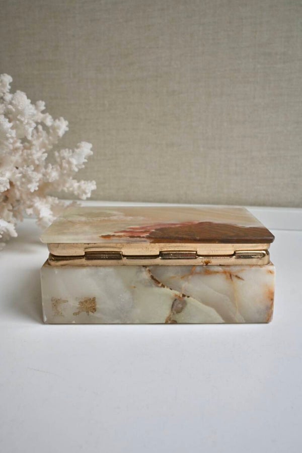 Fantastisch onyx marmeren sieraden doos, een ware beauty voor bijvoorbeeld in je badkamer of op je kaptafel.