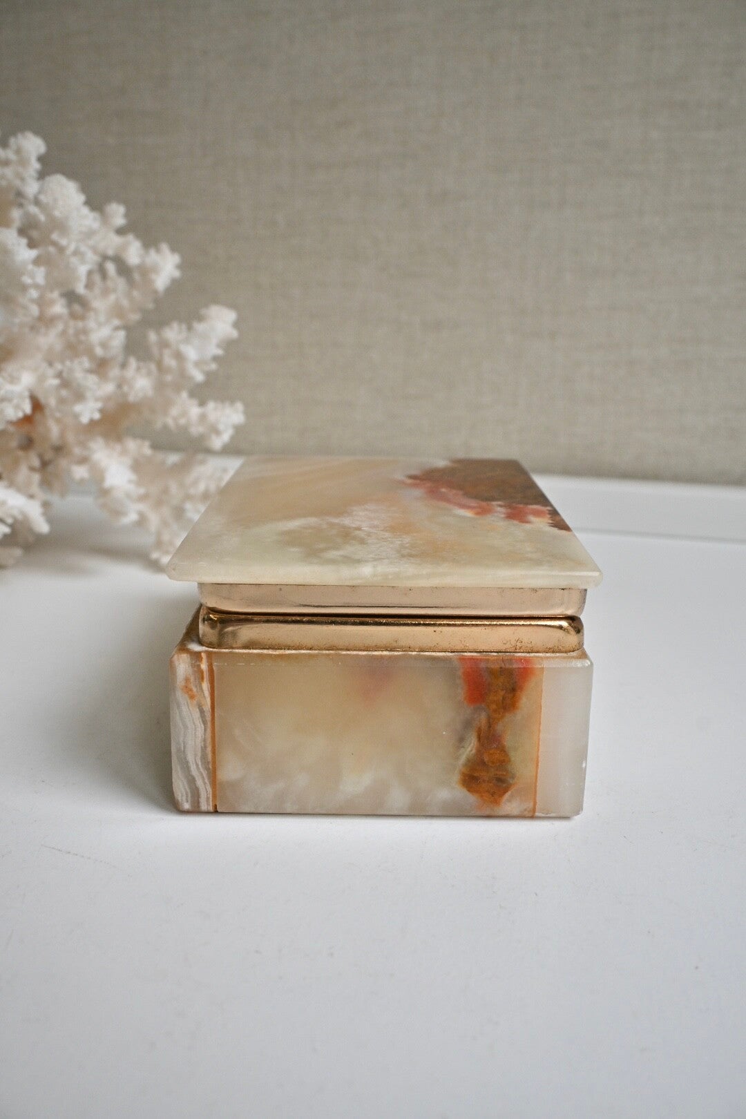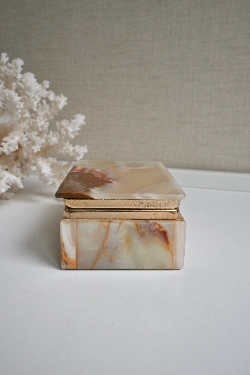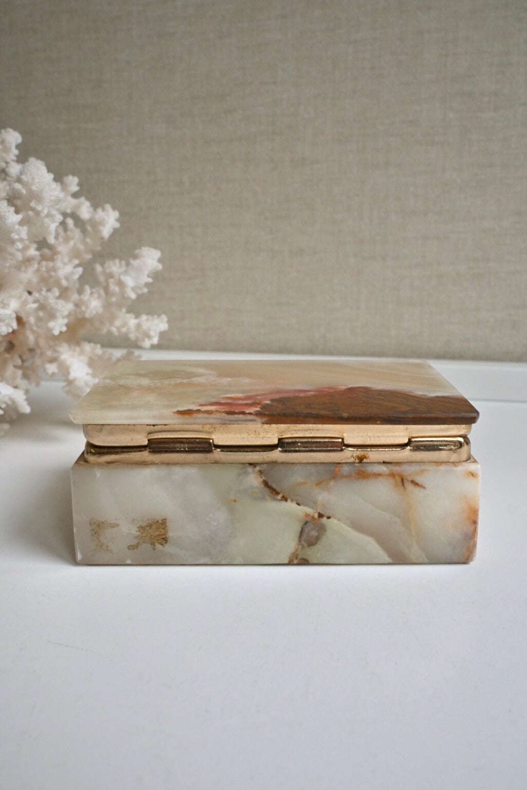 Fantastisch onyx marmeren sieraden doosje, een ware beauty voor bijvoorbeeld in je badkamer of op je kaptafel.
