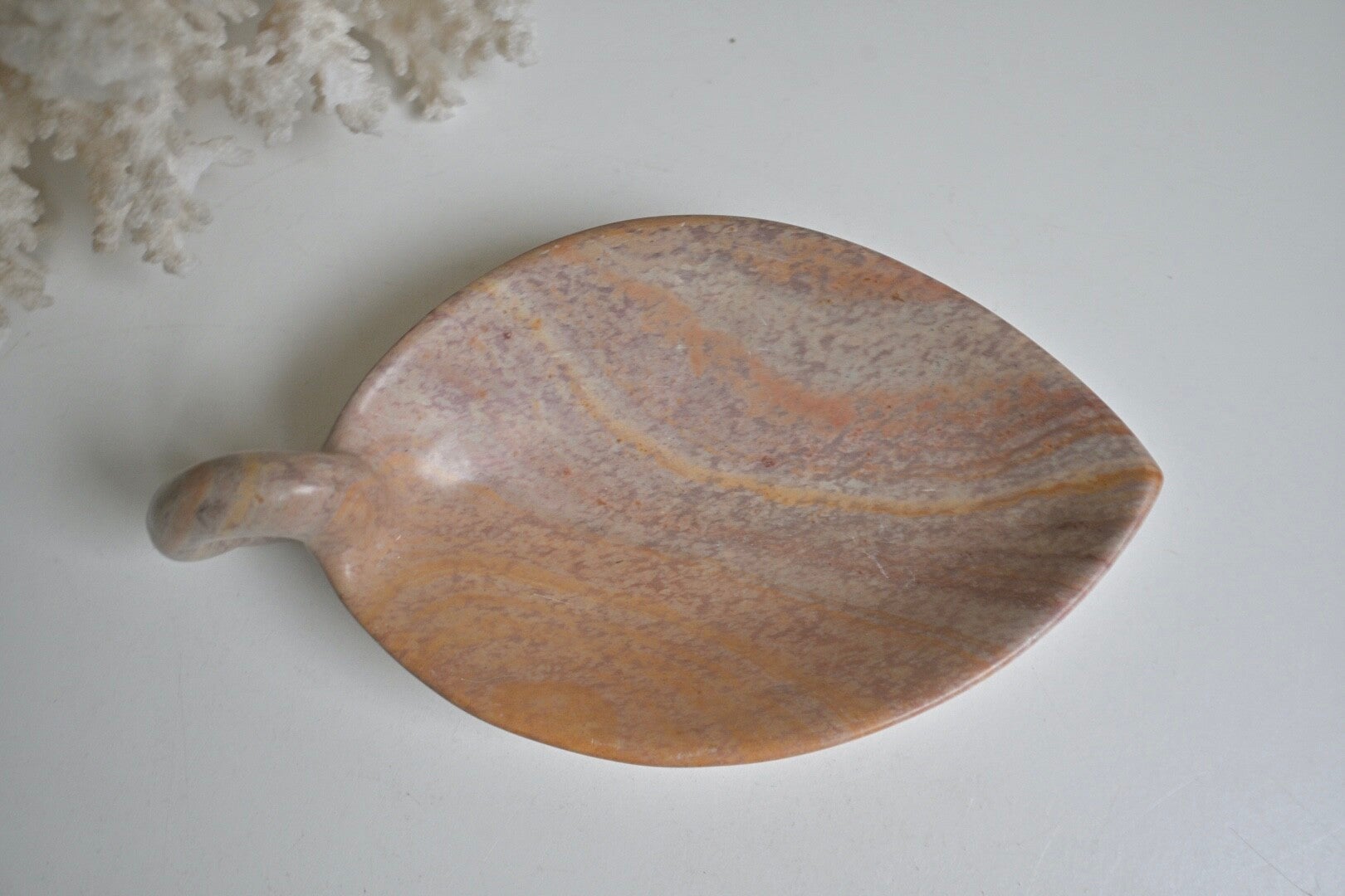 Speksteen schaaltje in de vorm van een zwaan/vogel. Het schaaltje is handgemaakt, en vertoont natuurlijke variaties in kleur, met schakeringen van lichtroze, beige en crème.