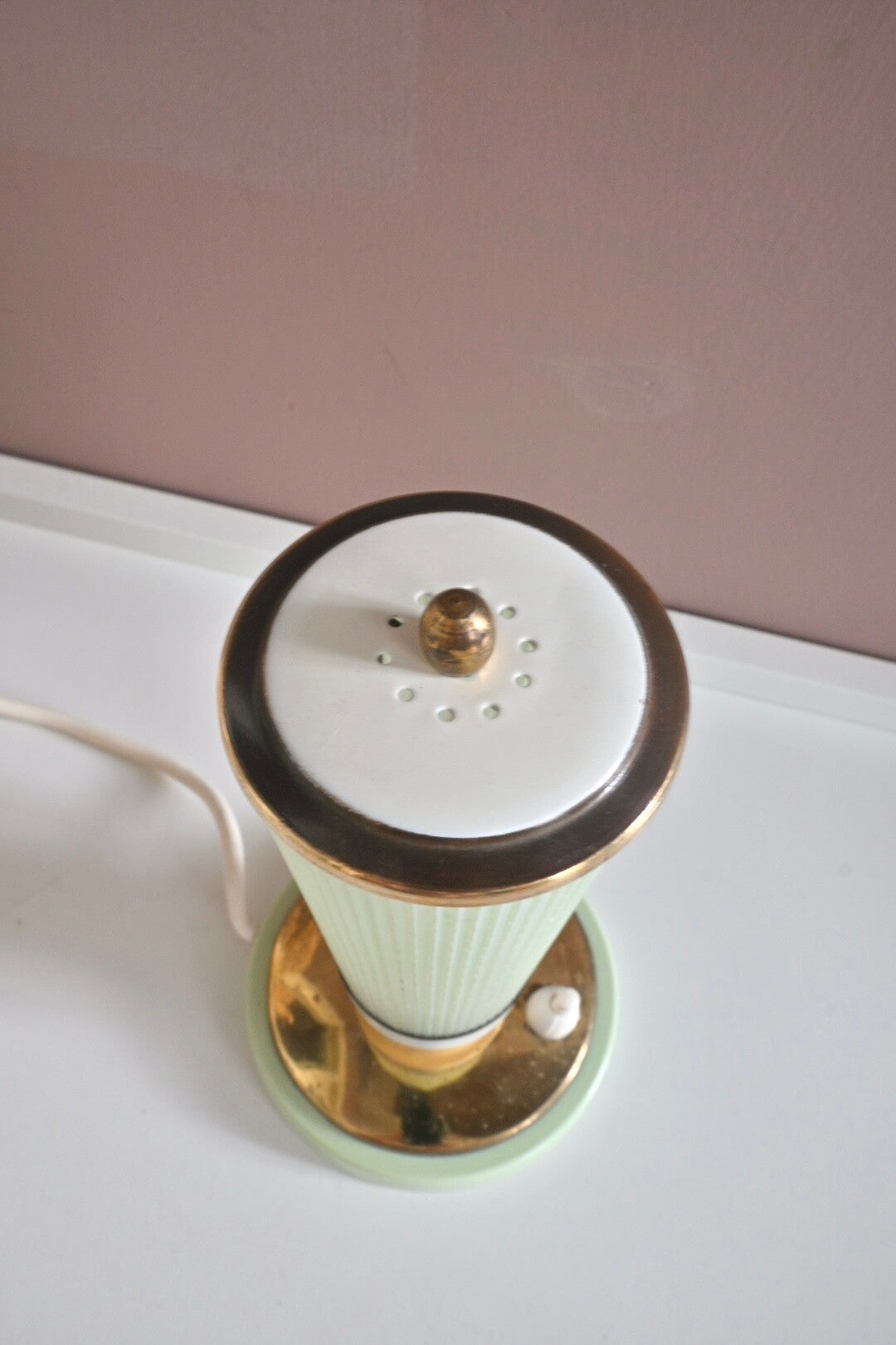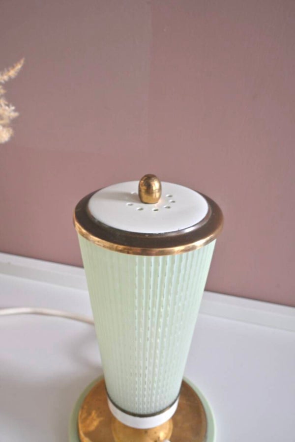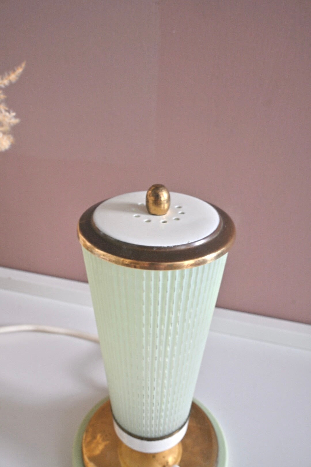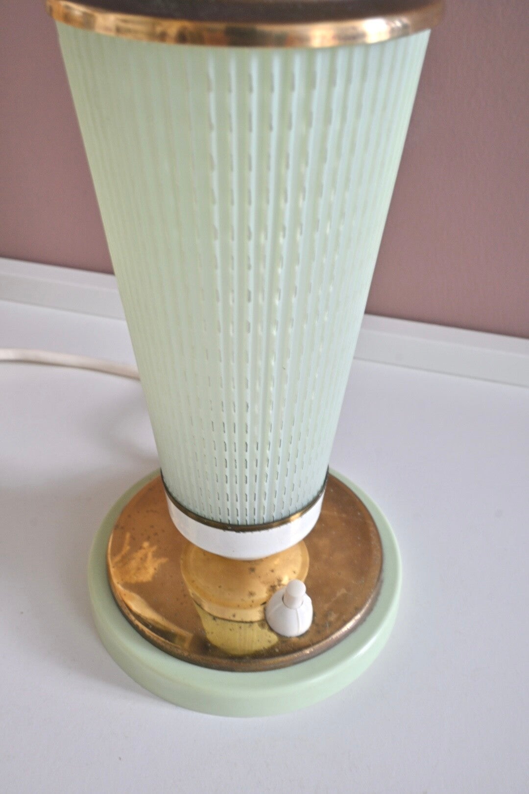 Bijzondere glazen tafellamp uit de jaren 60, afkomstig uit west Duitsland, stijl Bauhaus.De lamp gaat aan en uit d.m.v het schakelaartje op de lamp. De lamp verkeert nog in een goede werkende staat.H:21,5cm Dia voet:11cm Dia lamp: 8cm