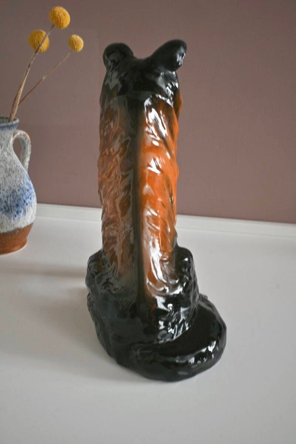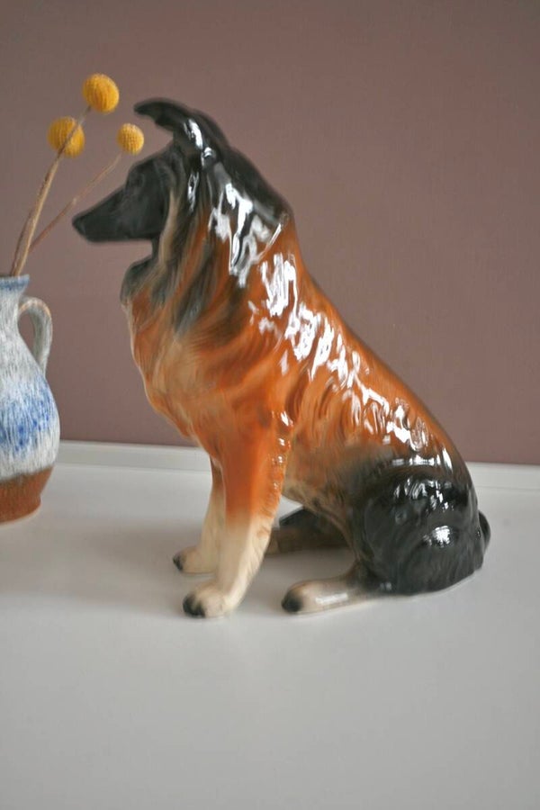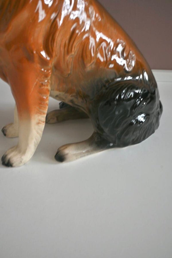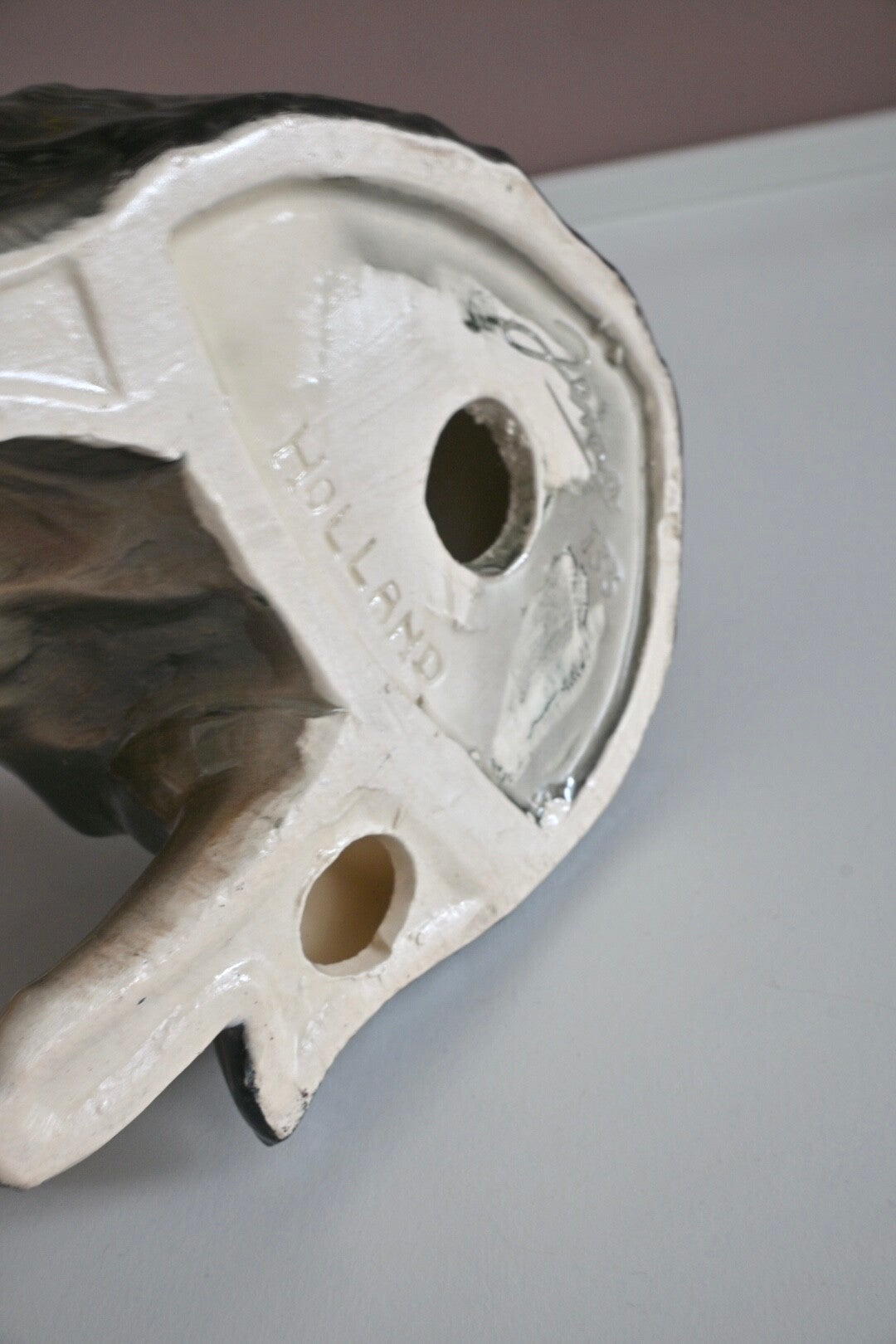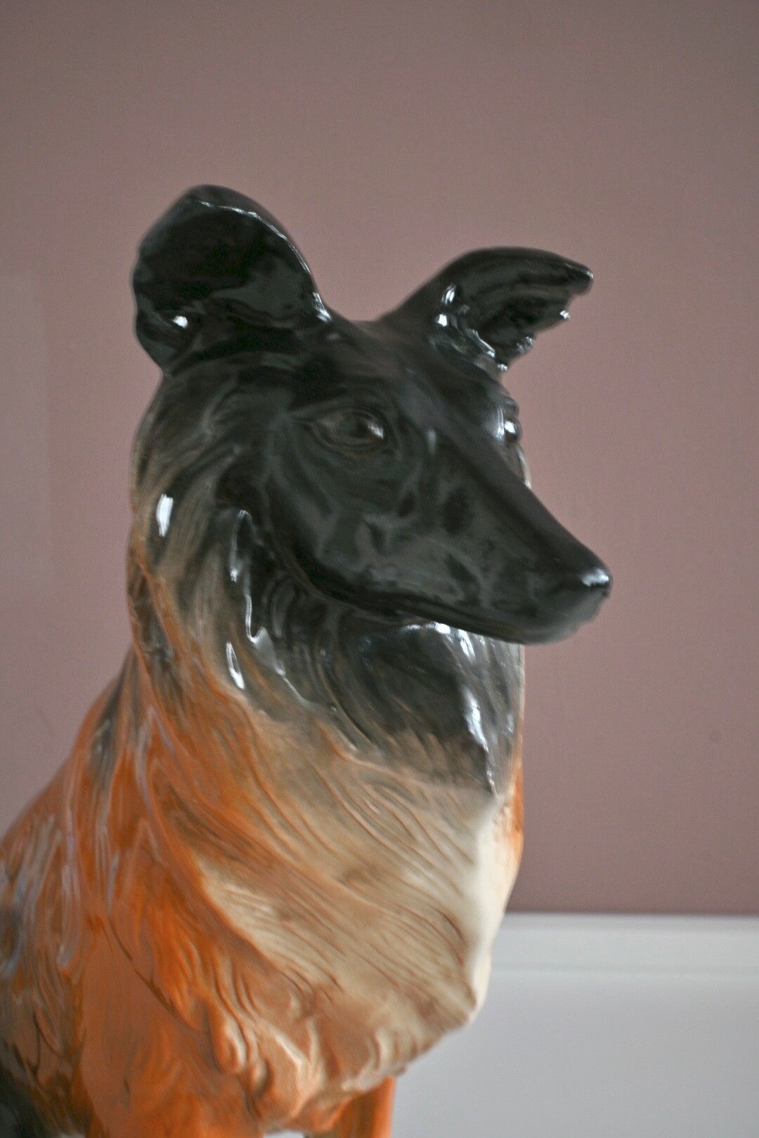 Decoratief Jema Holland beeld van een Collie, het beeld is gemaakt van hoogwaardig keramiek met verfijnde details. Mooi geglazuurd in zwart, oranje/bruin en wit.Verkeert nog in een goede staat, geen chips o.i.d.