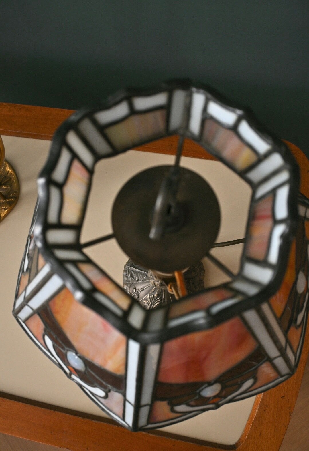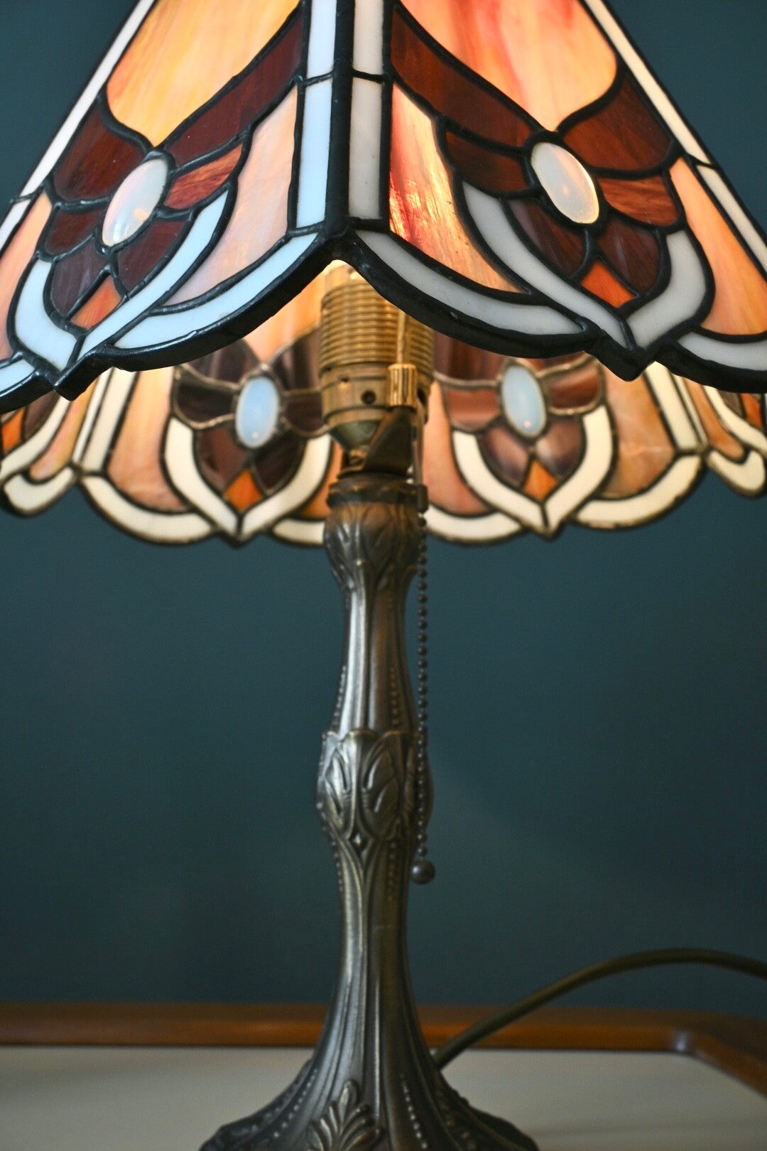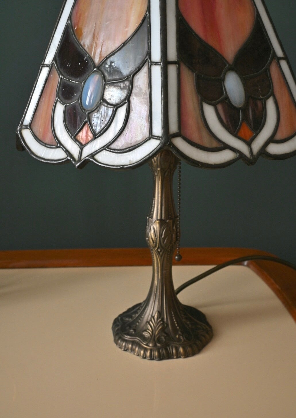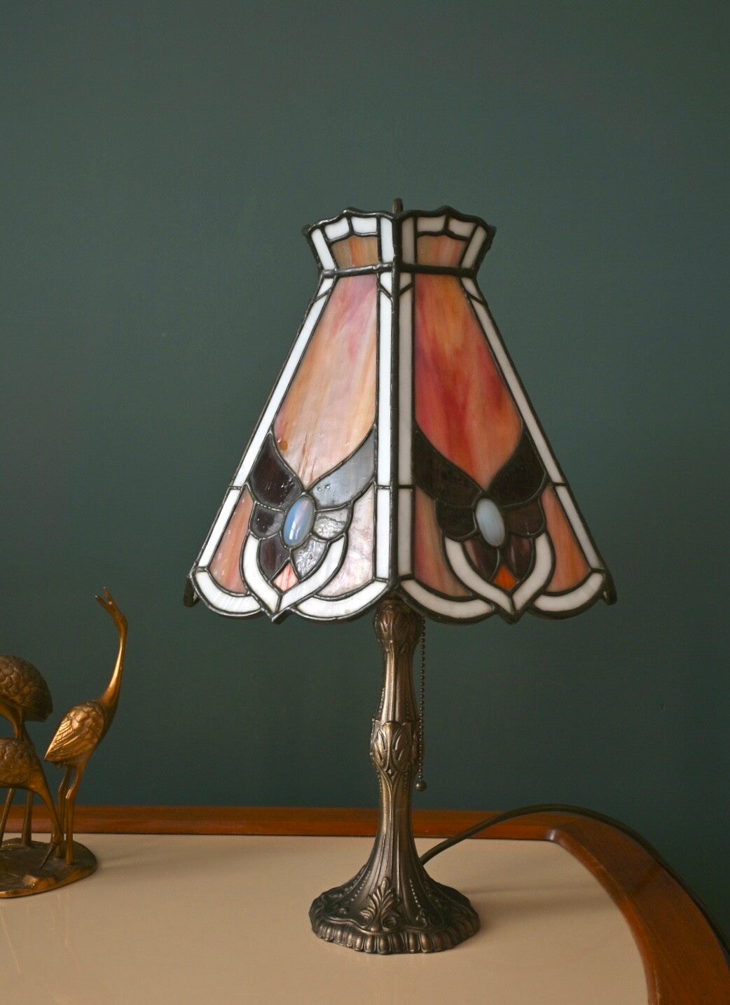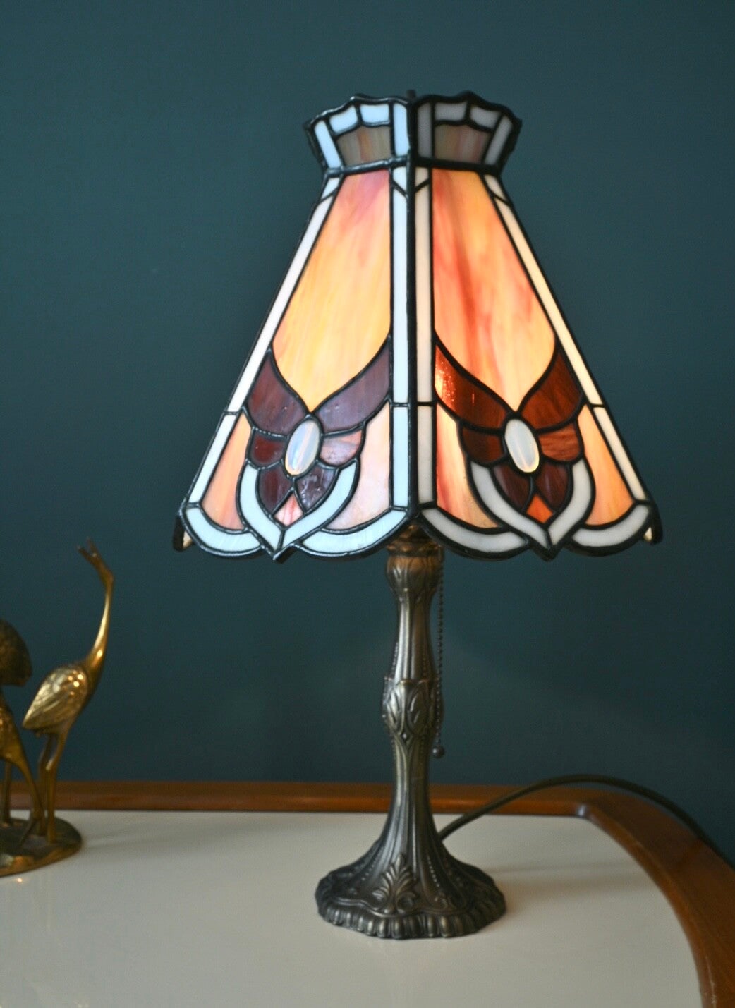 Mooie Tafellamp in Tiffany Stijl 47cm hoog. Het ontwerp van deze Tiffany stijl lamp is tijdloos het verspreid een zeer sfeervolle gloed die perfect past bij zowel klassieke als moderne decors.
