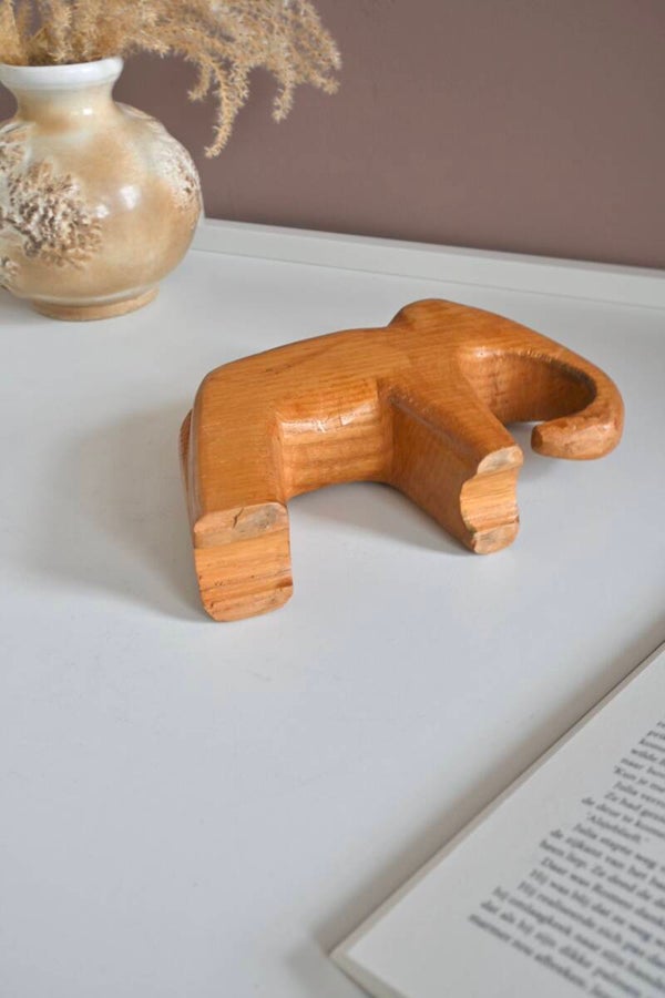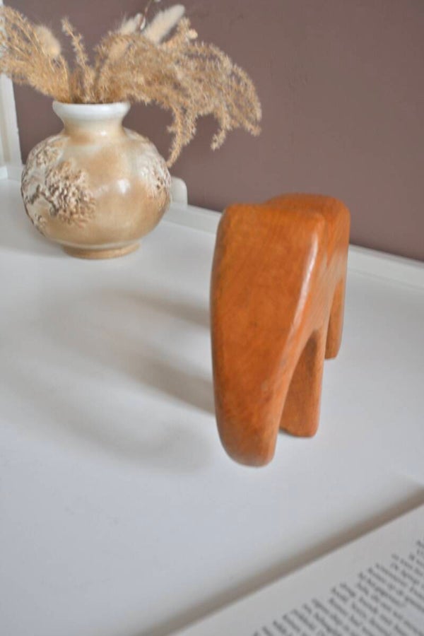 Houten olifant in de stijl van Kay Bojesen of Ostheimer. Het beeeldje heeft organische vormen en een strakke afwerking. H:14,5 L:20cm B:5,5cm