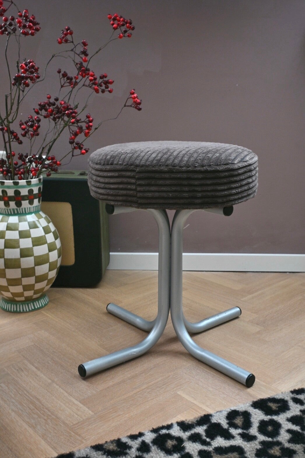 Vintage kruk, uit de jaren 70, zitting en een aluminium kruisvoet.