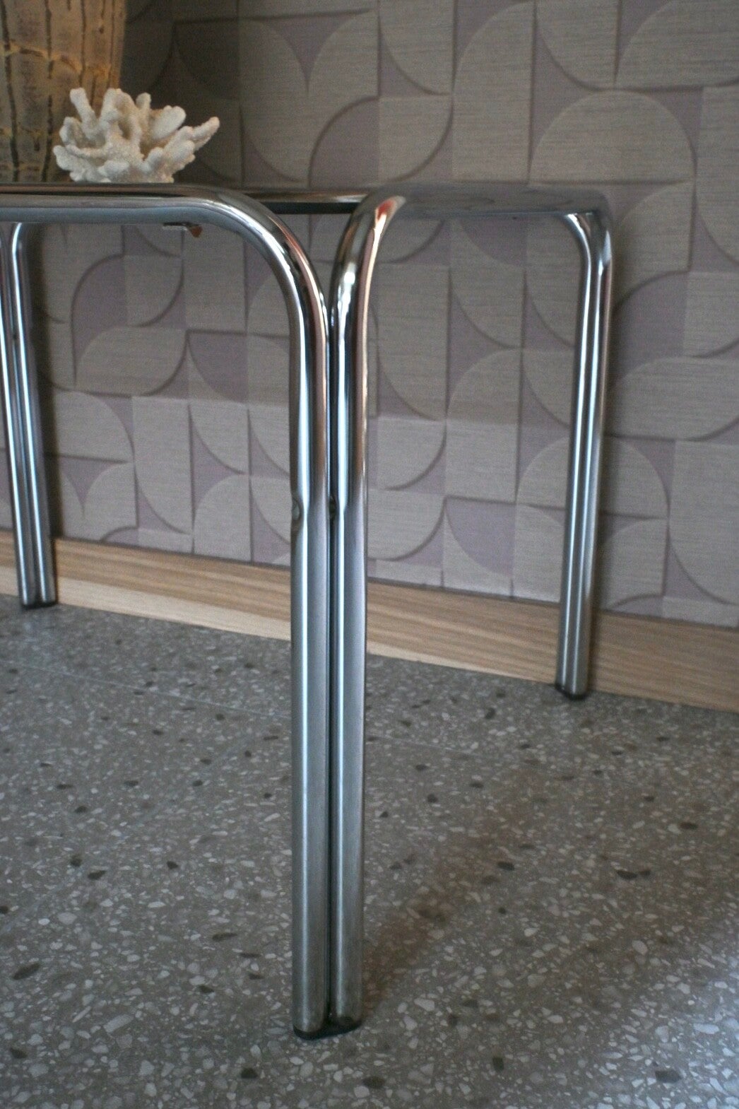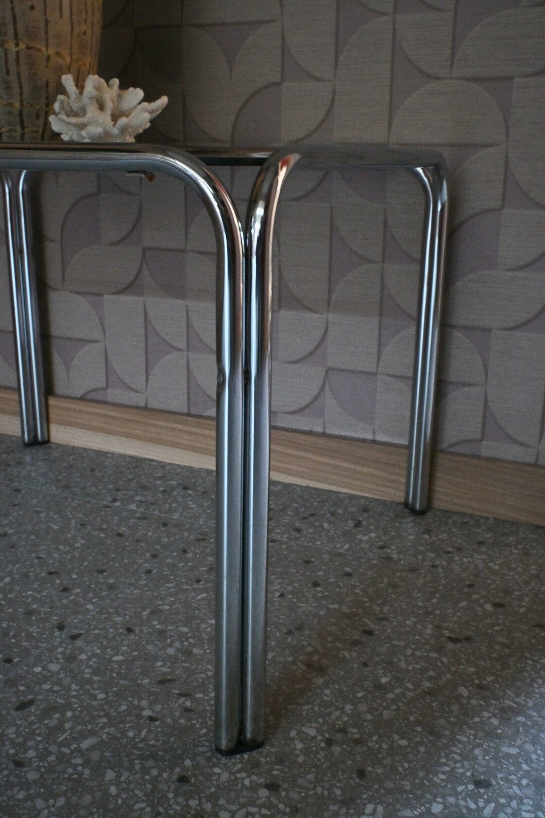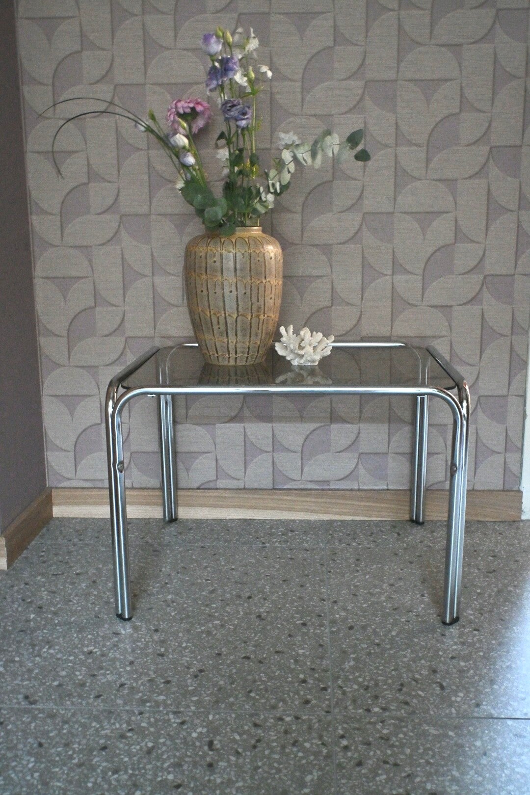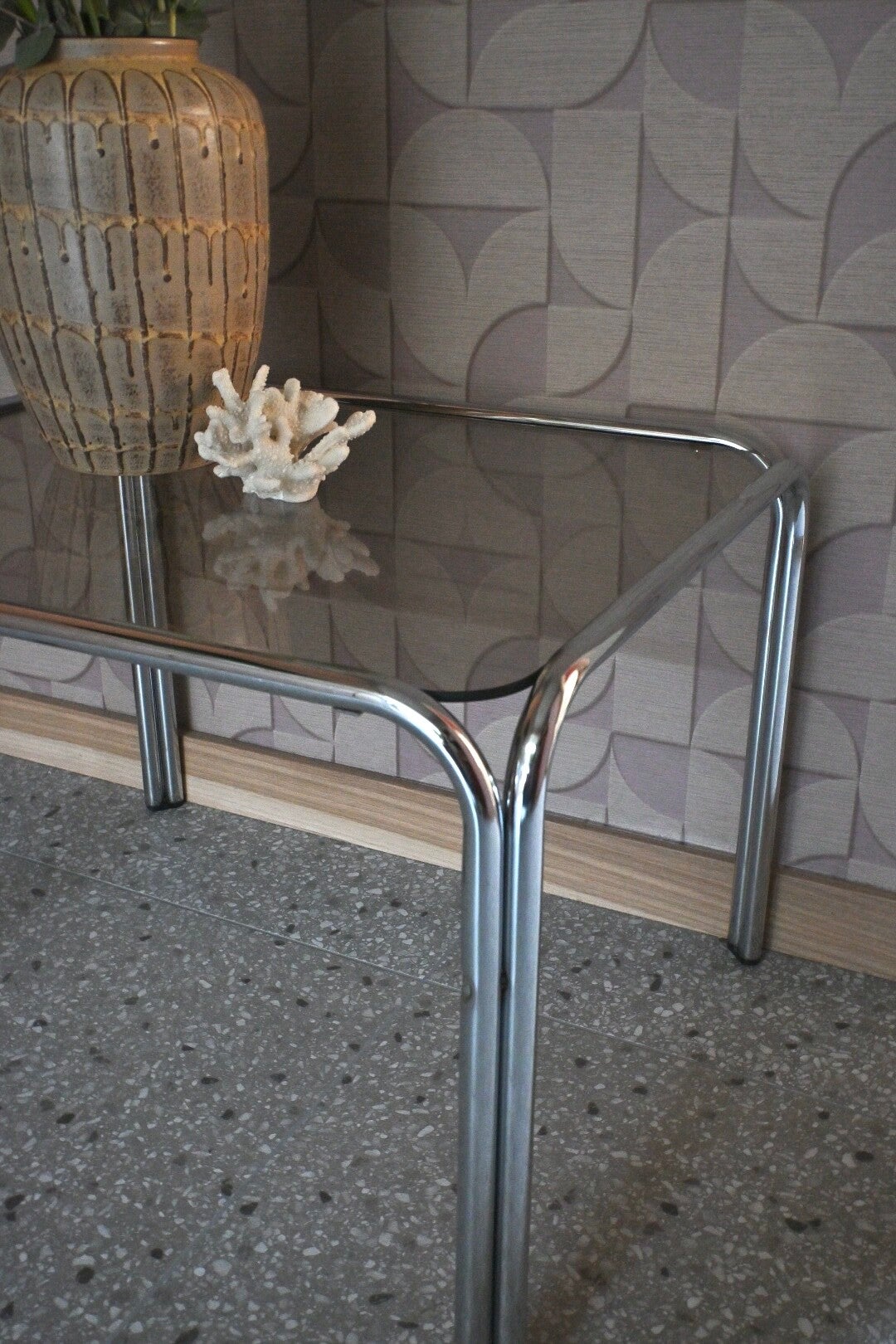 Buizenframe vintage bijzettafel met rookglazen blad