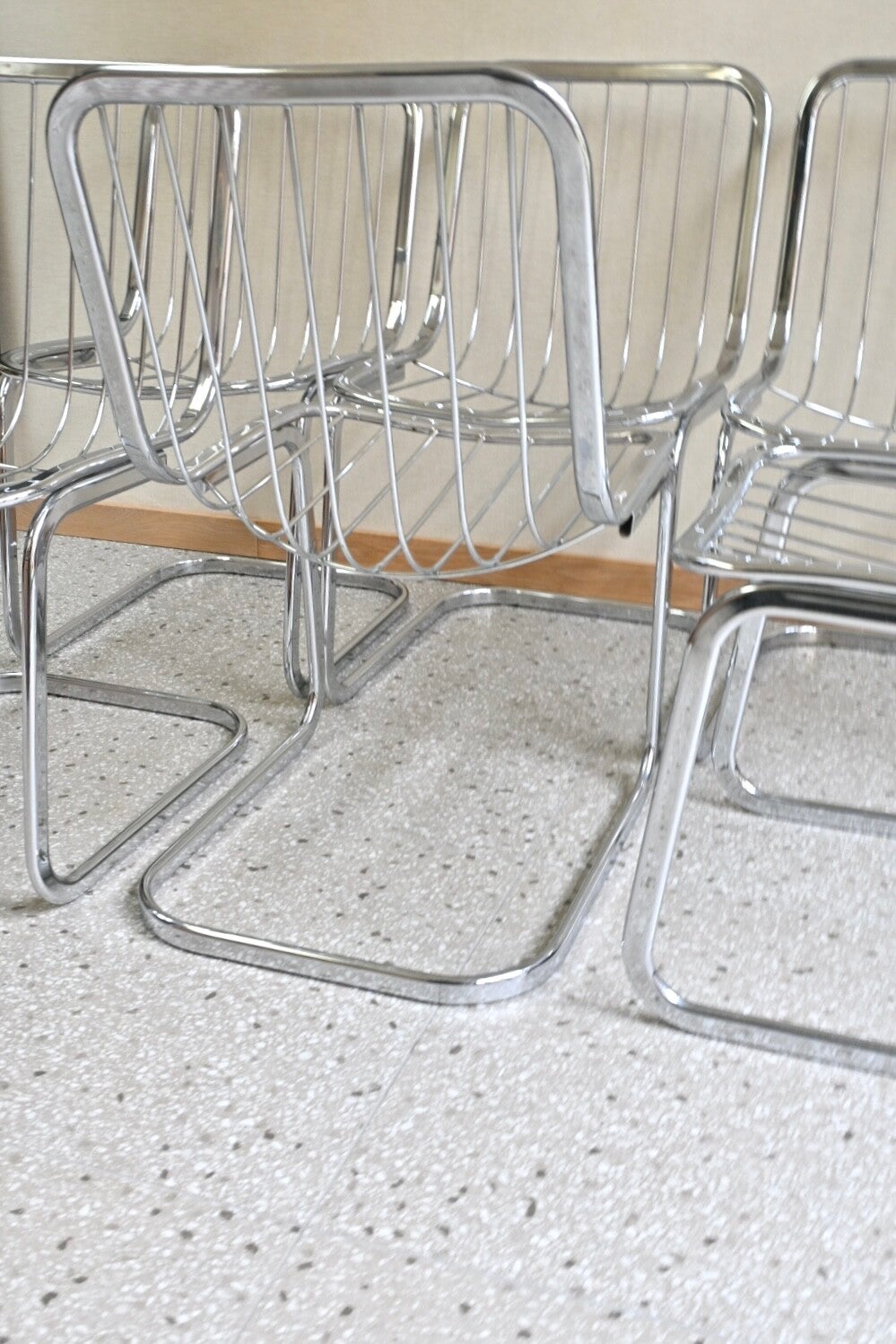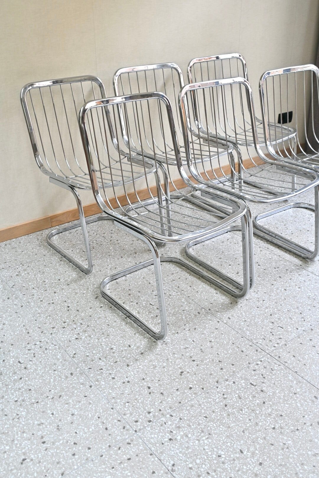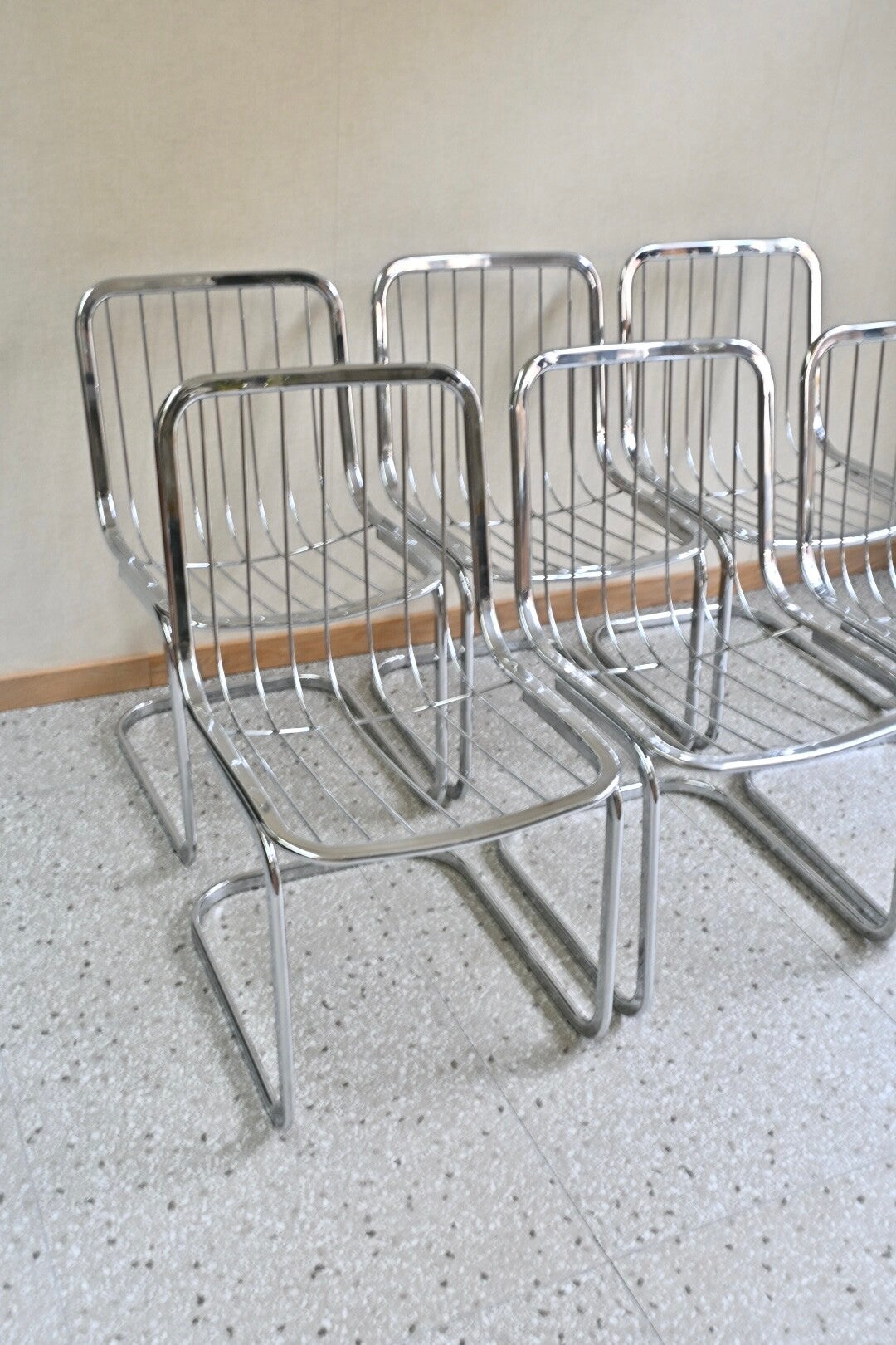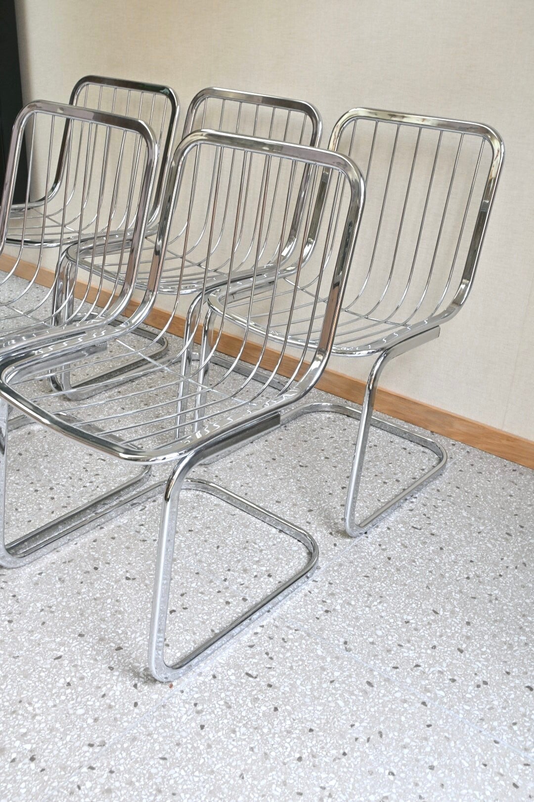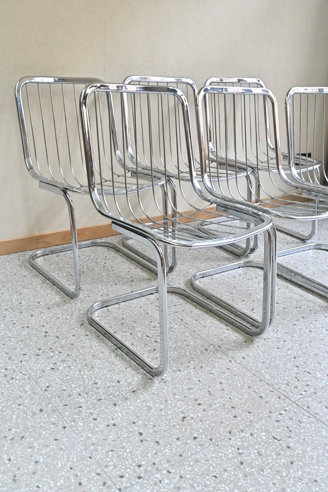 Prachtige set van 6 Gastone Rinaldi verchroomde buisframe stoelen.