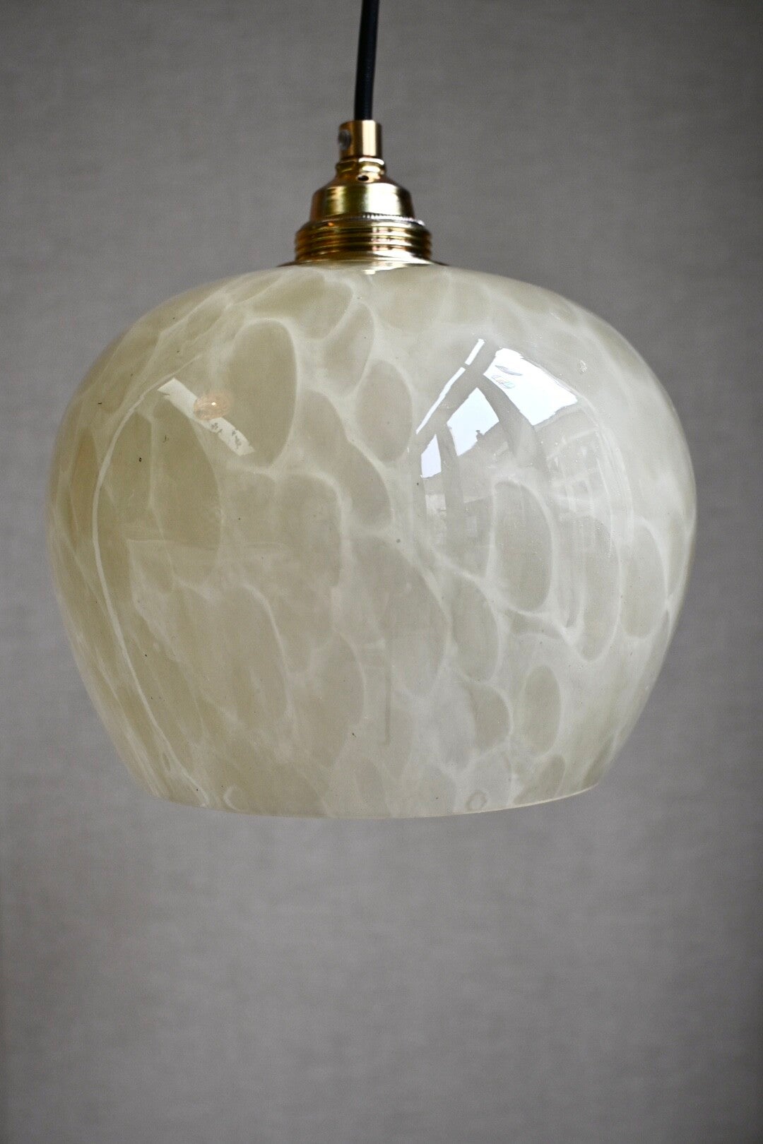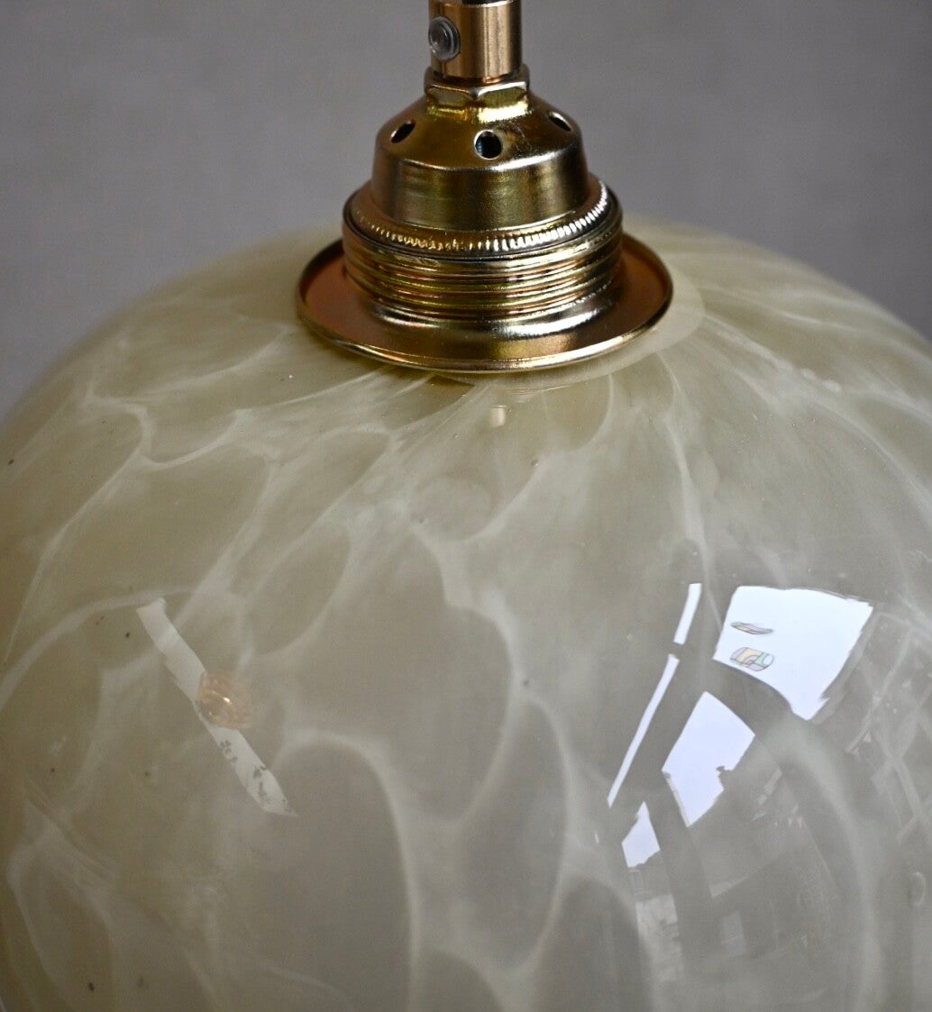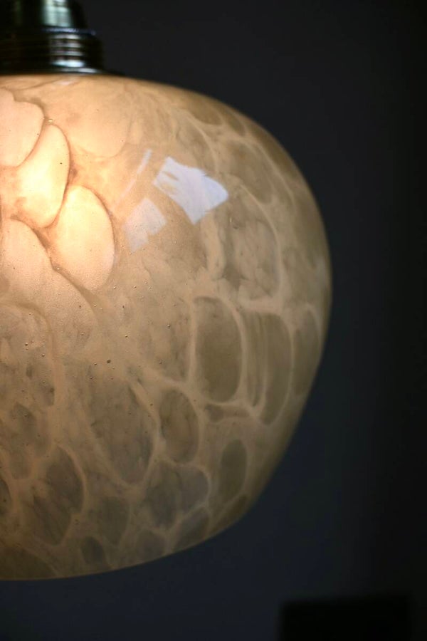 Mooie vintage hanglamp met een unieke glazen kap. De lamp geeft sfeervol licht af en heeft een mooie uitstraling.