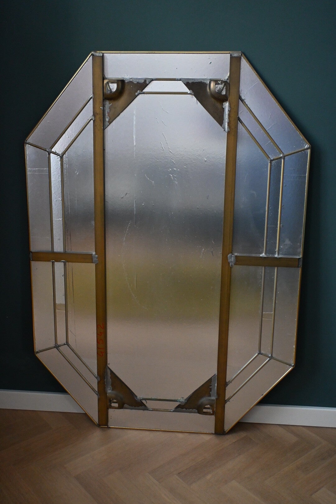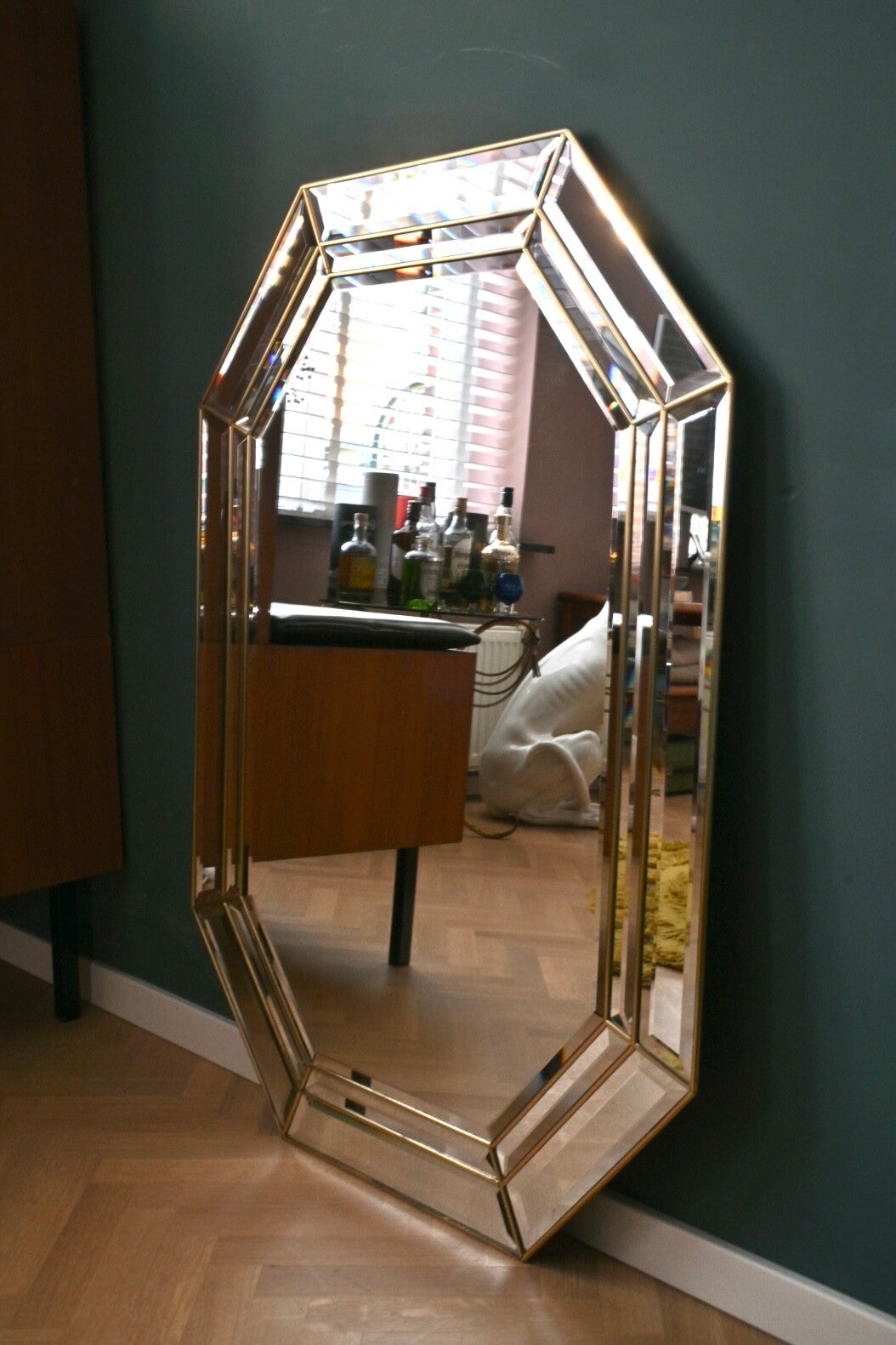 Grote spiegel met Facet geslepen glas, achthoekig