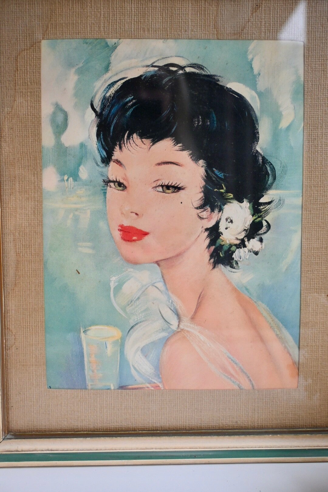 Tof vintage retro schilderij een typische afbeelding uit de jaren 60, passend in een Mid Century Hollywood Regency stijl