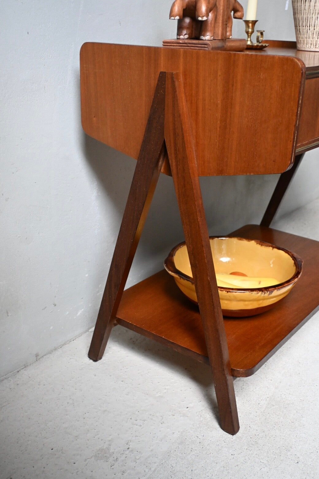 Mid-century bijzettafel massief hout en teakfineer.