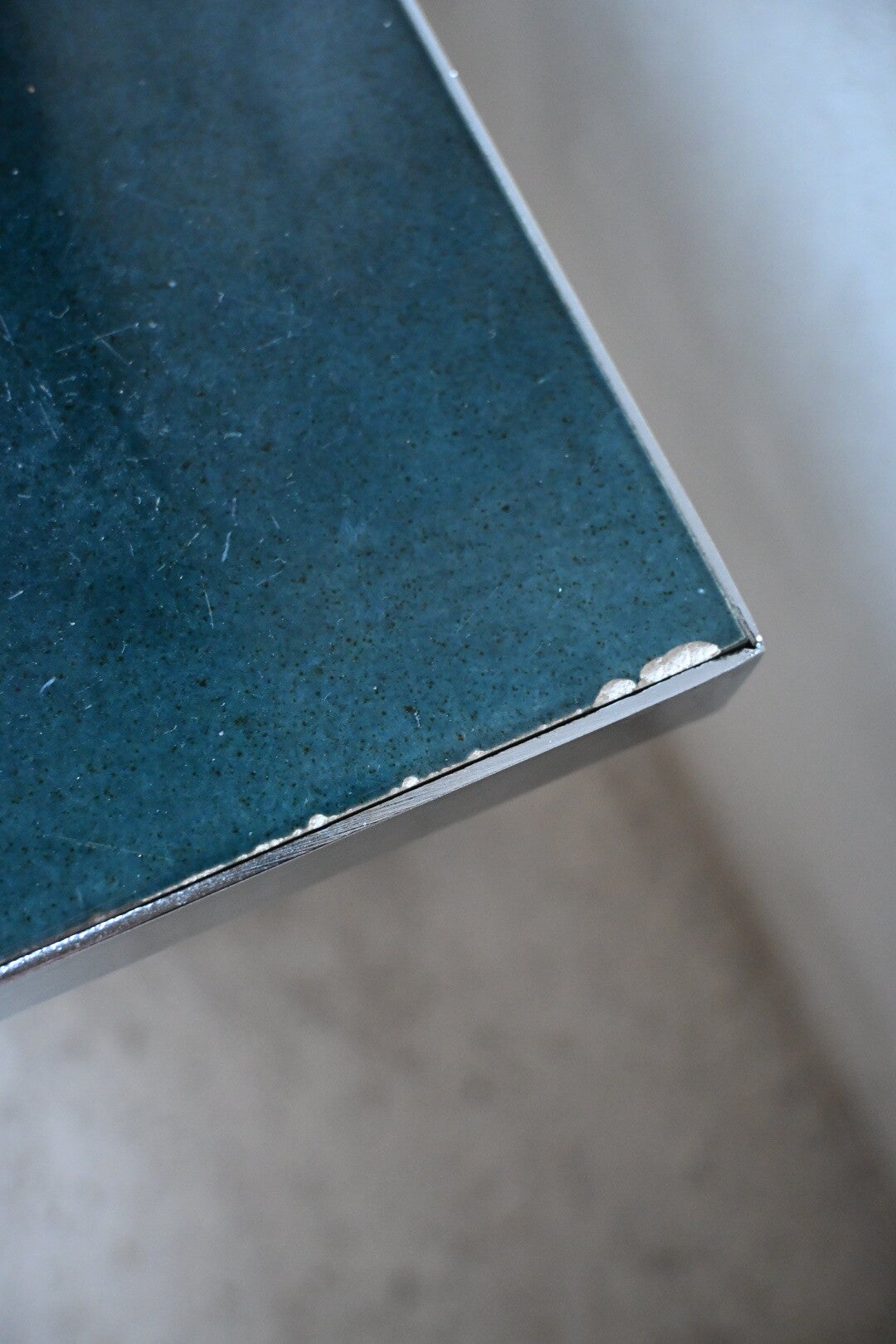 Vintage salontafel is een typisch jaren 70 design van Adri Belarti, gekenmerkt door een keramisch tegelblad met bloemmotieven in reliëf en een verchroomd metalen onderstel.