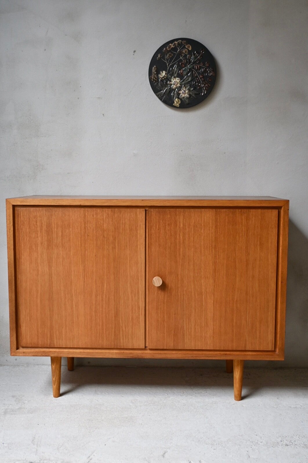 Mooi mid-century kastje met deurtjes op conische houten pootjes vervaardigt door WK-möbel.