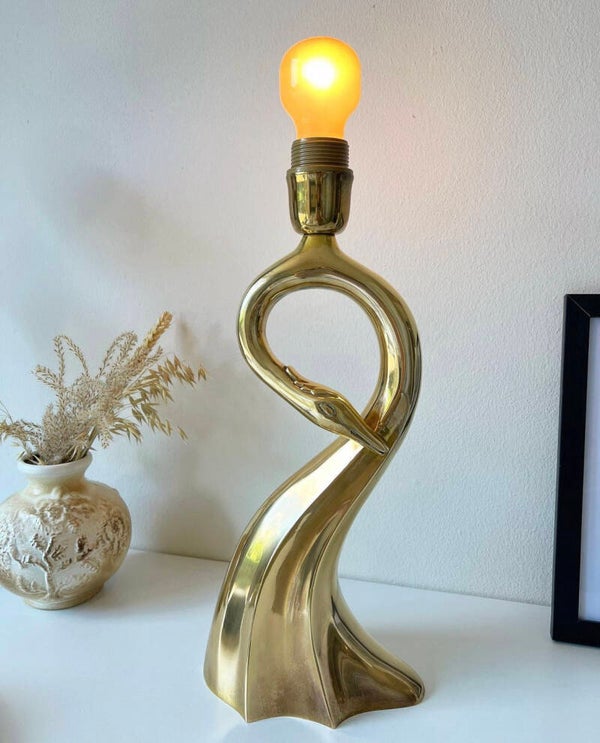 Waanzinnig mooie tafellamp van Frederick Cooper Chicago, in de vorm van een prachtige sierlijke messing zwaan. Prachtige eyecatcher voor in je interieur ෆ
